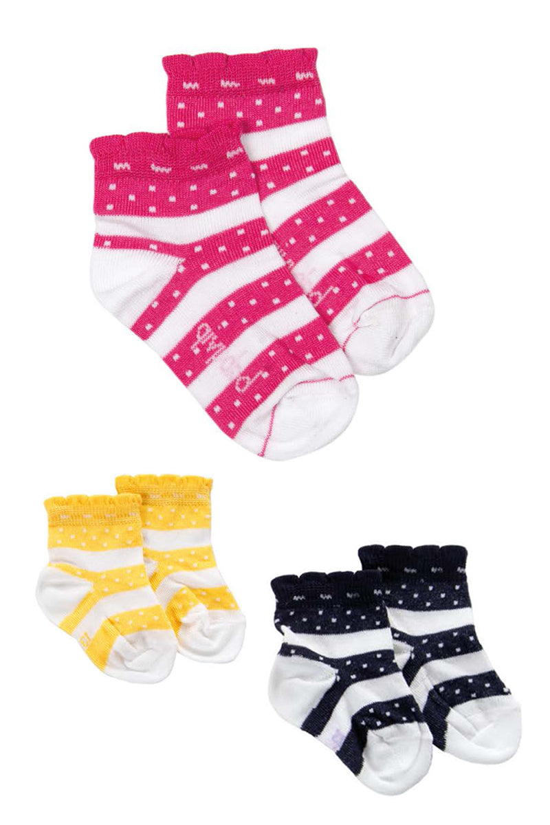 3 paia calzino corto in cotone mercerizzato con fantasia fasciata e a pois