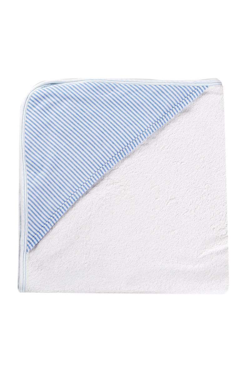 Accappatoio a triangolo con inserto in tessuto rigato e ricamo.