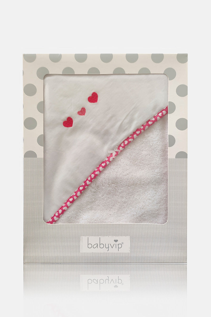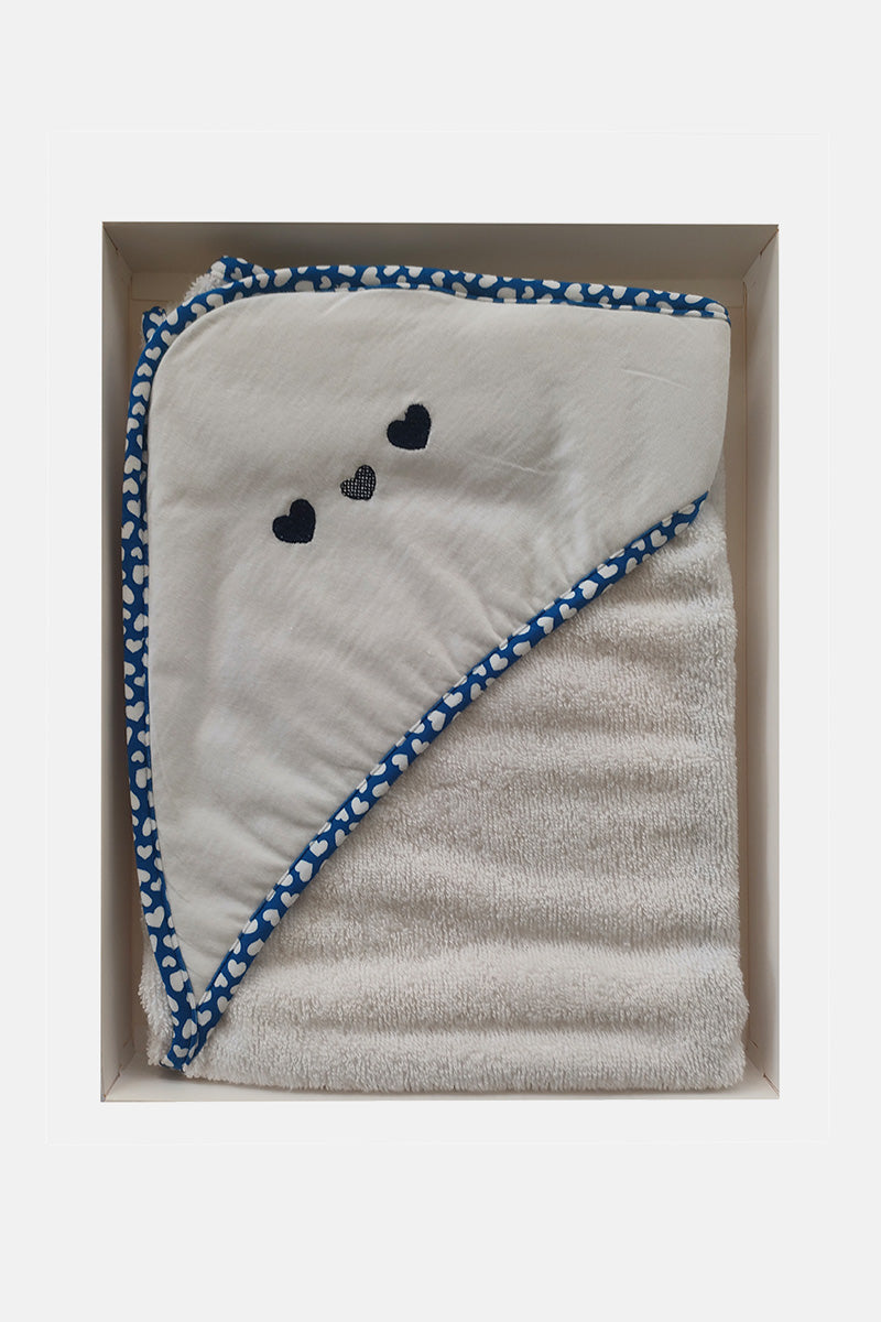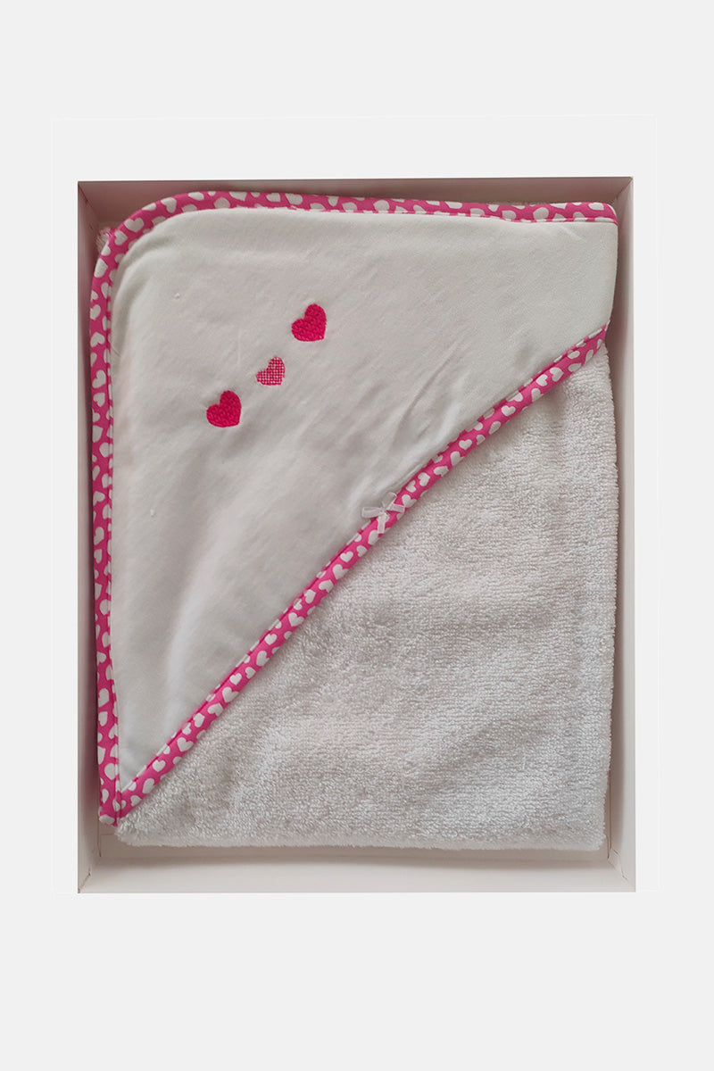 Accappatoio a triangolo in spugna con ricamo cuoricini e nodino