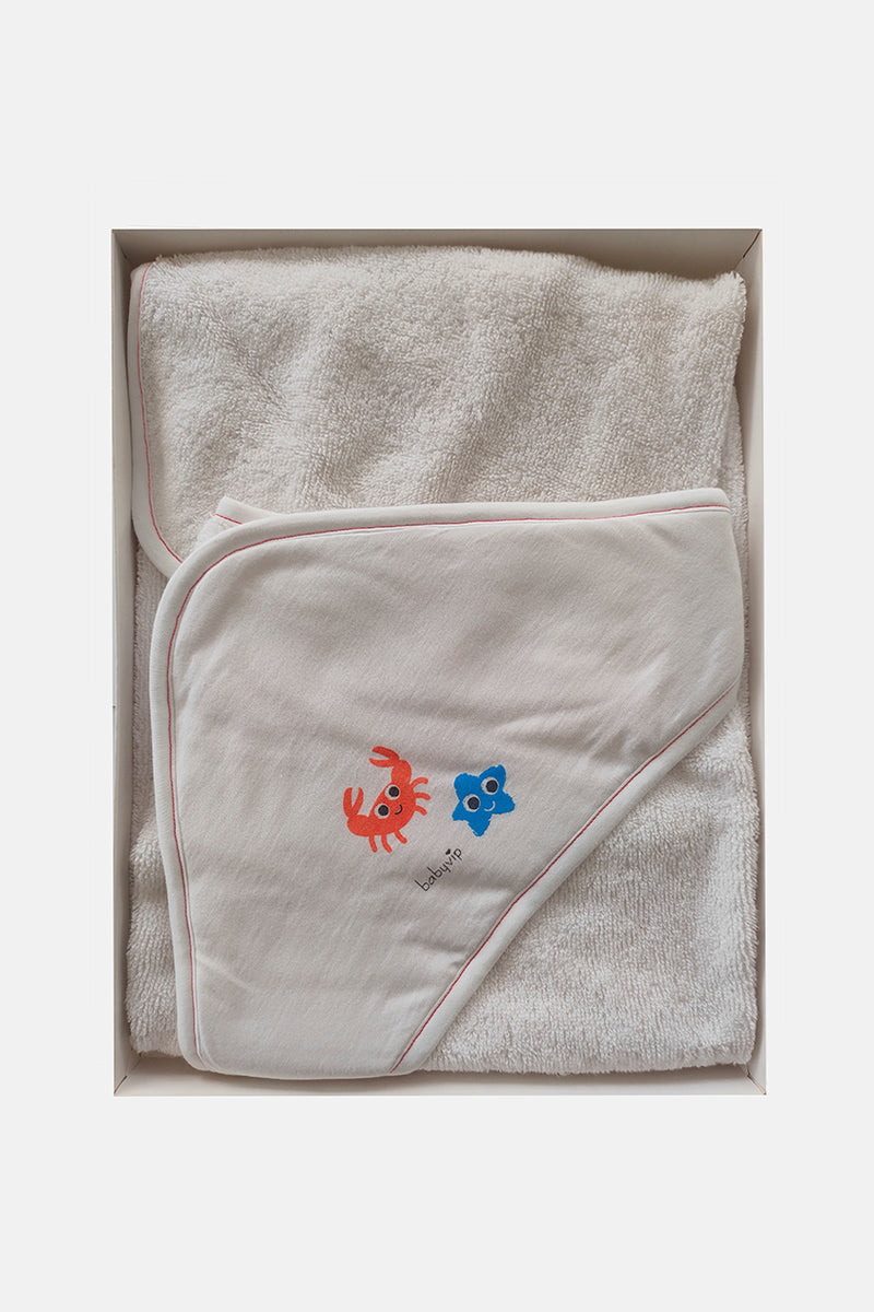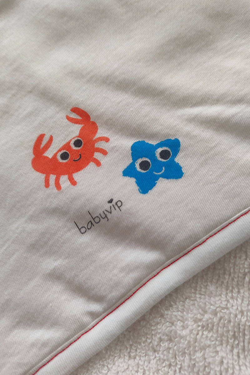 Accappatoio a triangolo in spugna con stampa granchietto e stellina