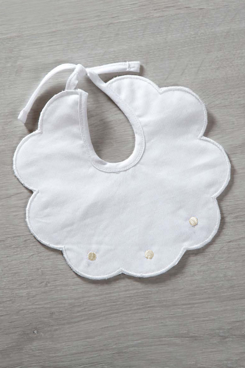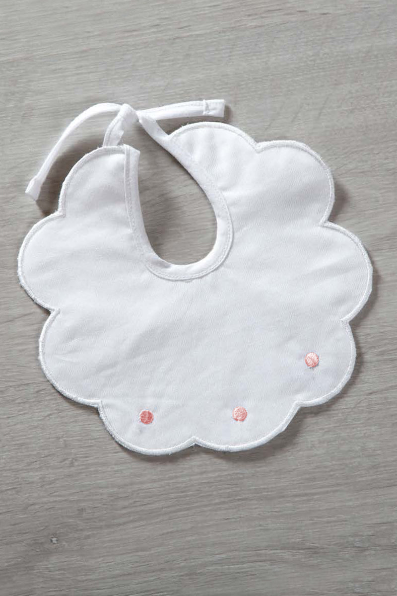 Bavetta neonato in cotone batista in piquet a navetta con ricamo pois
