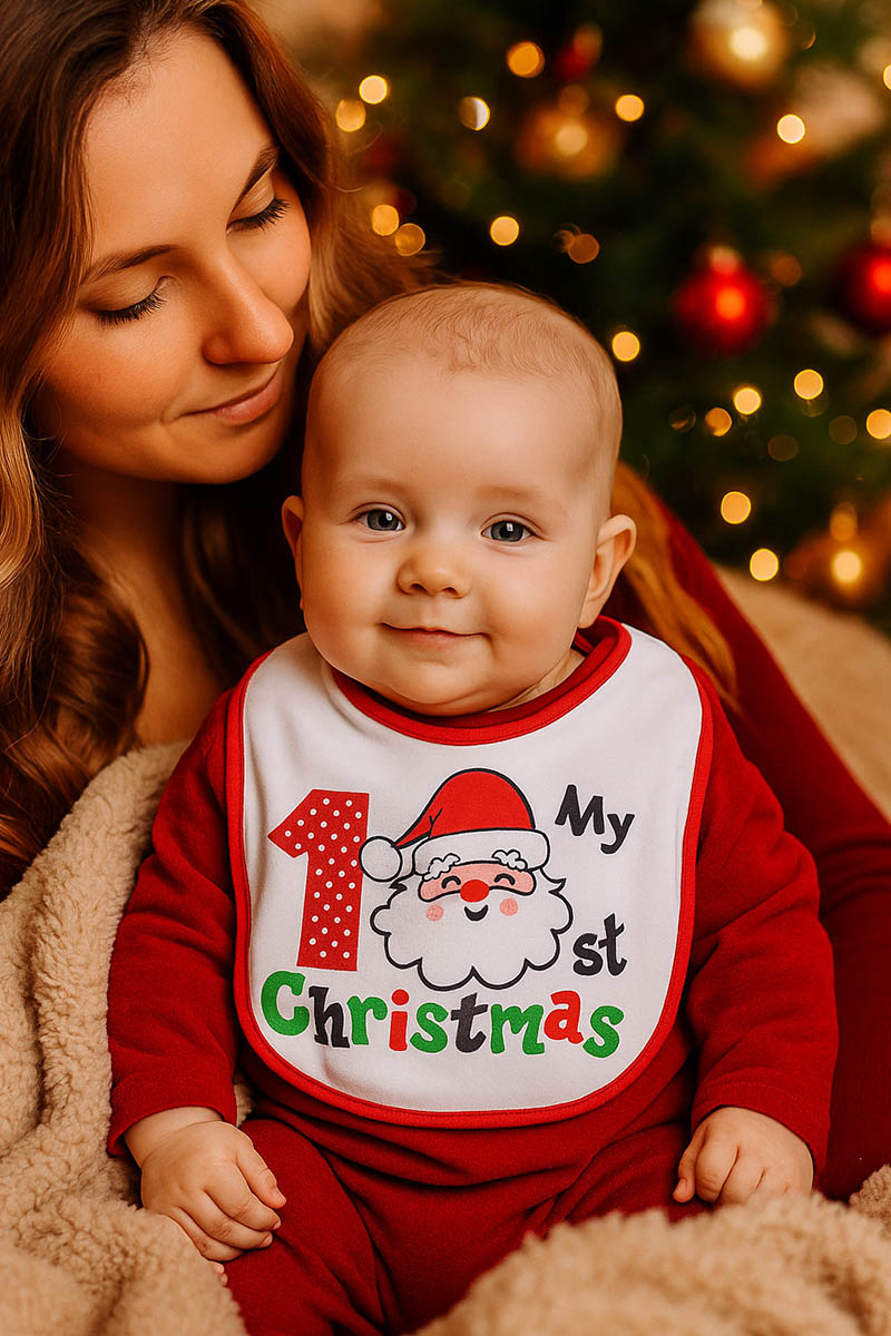Bavetta neonato con stampa natalizia e bordo in contrasto