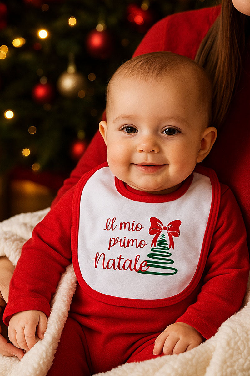 Bavetta neonato con stampa natalizia e bordo in contrasto