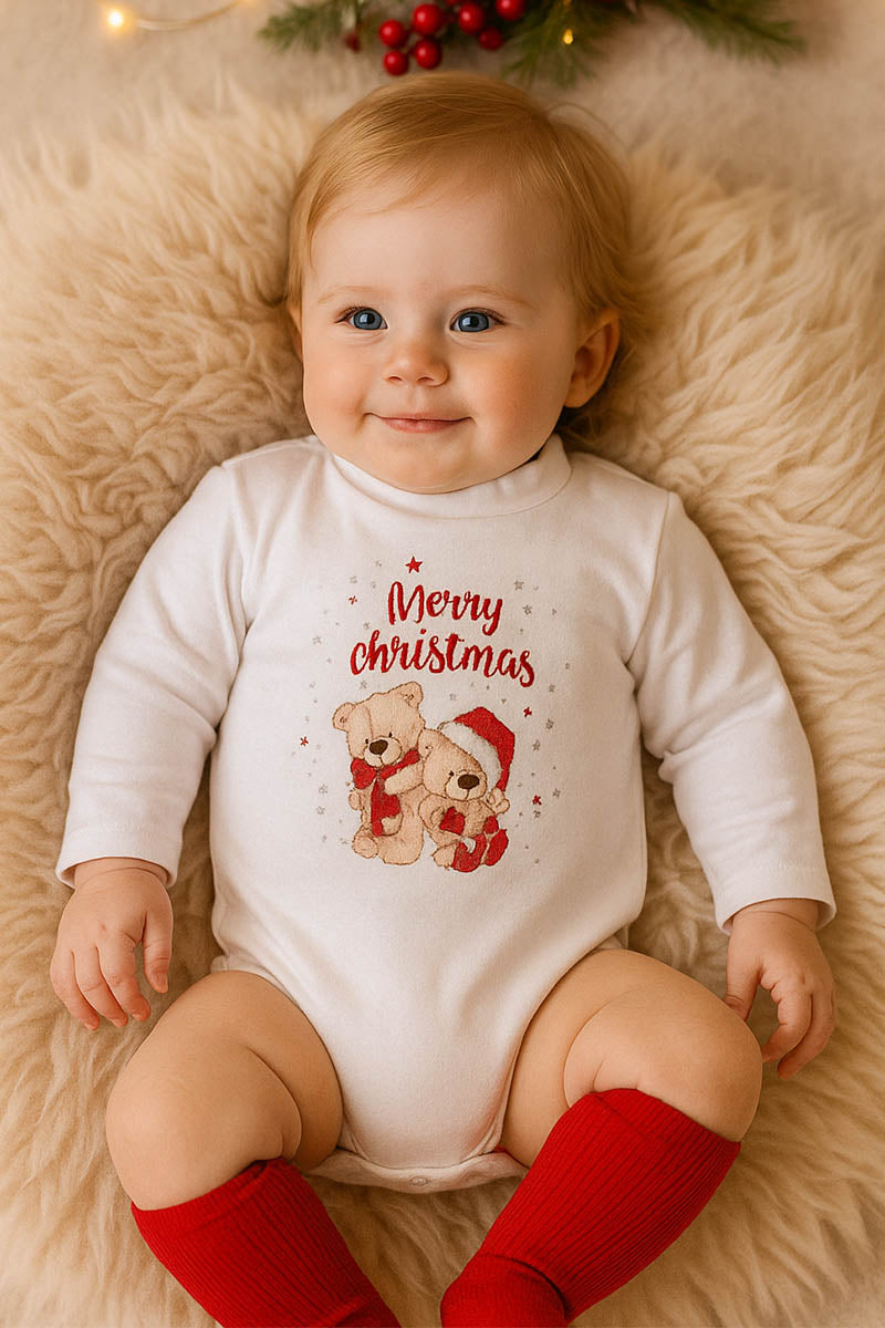 Body a lupetto manica lunga in caldo cotone con stampe natalizie