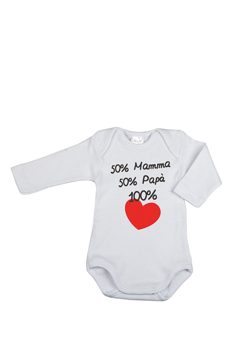 Body manica lunga con stampa "50% Mamma 50% Papà 100% Cuore"