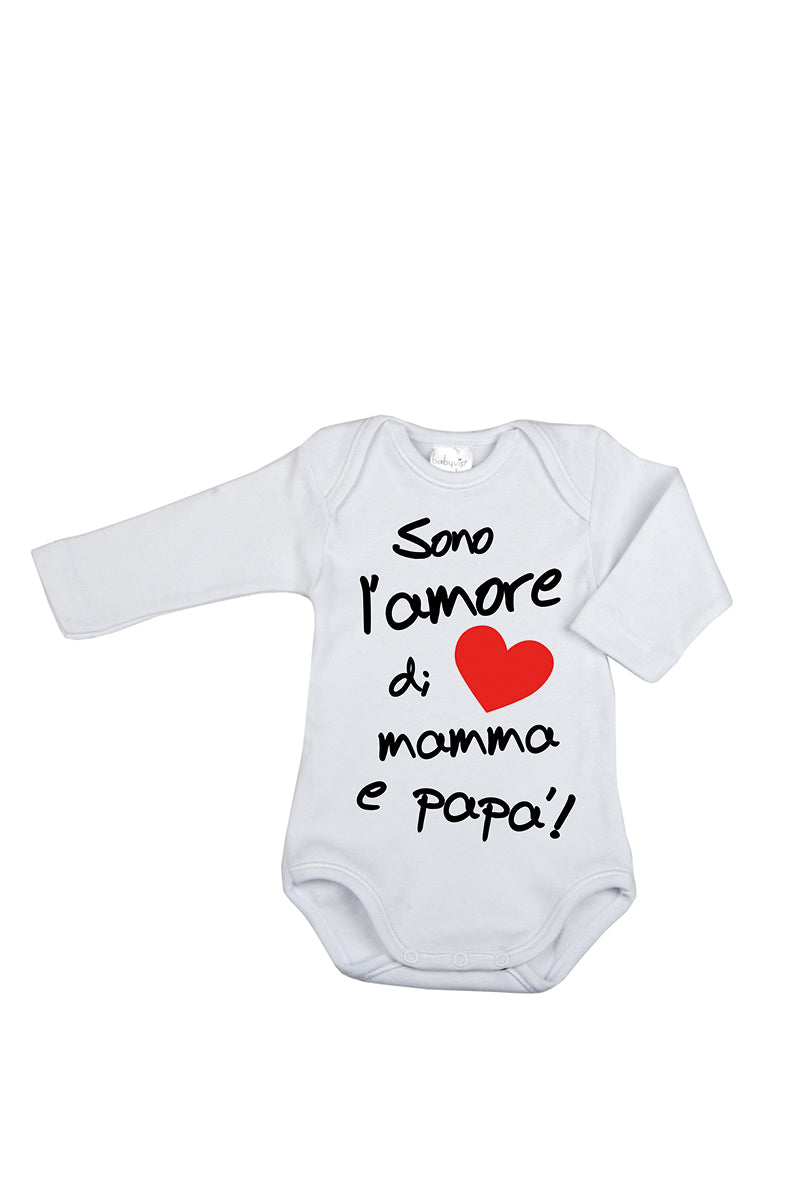 Body manica lunga con stampa "Sono l'amore di mamma e papà!"