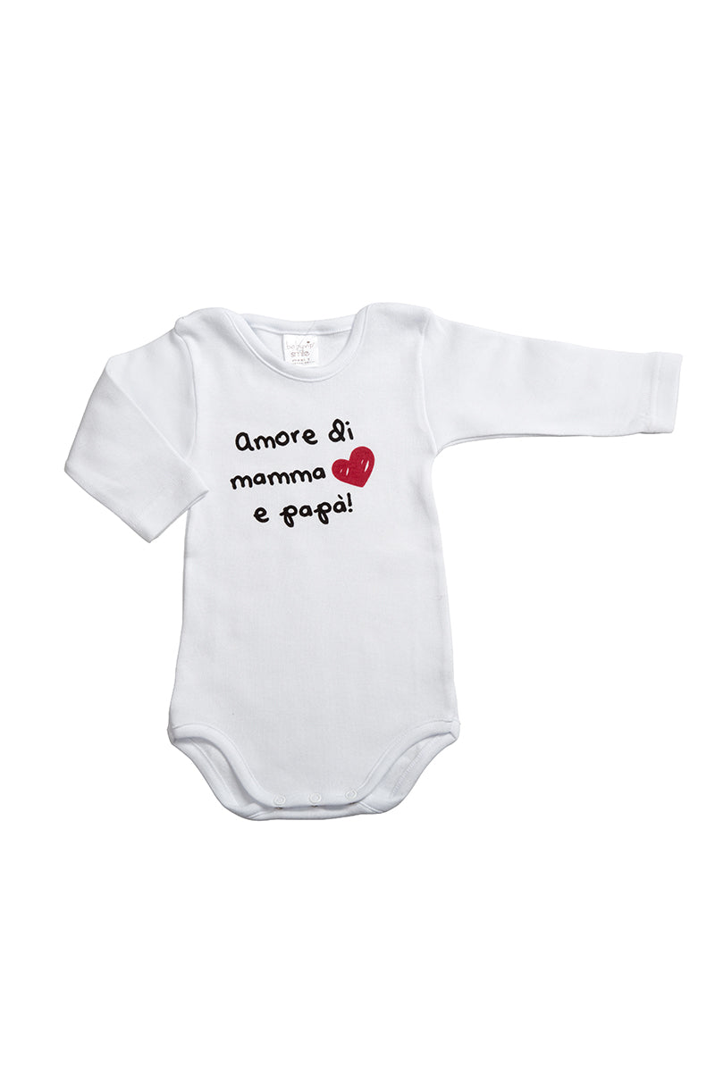 Body manica lunga con stampa "Amore di mamma e papà"