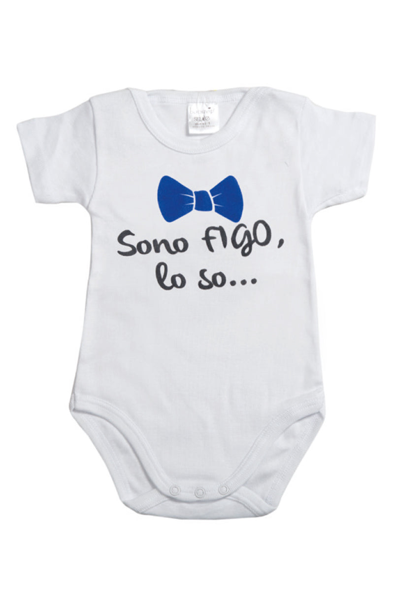Body mezza manica in cotone con stampa "Sono Figo, lo so..."