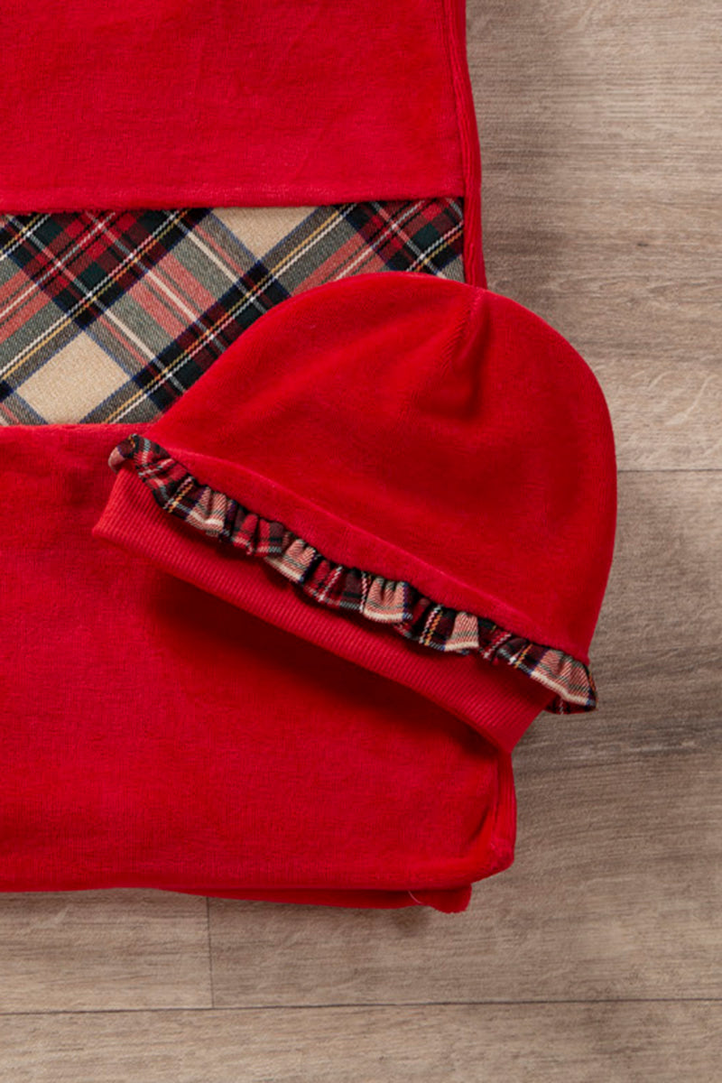 Cappellino neonata in ciniglia con rouches in flanella scozzese