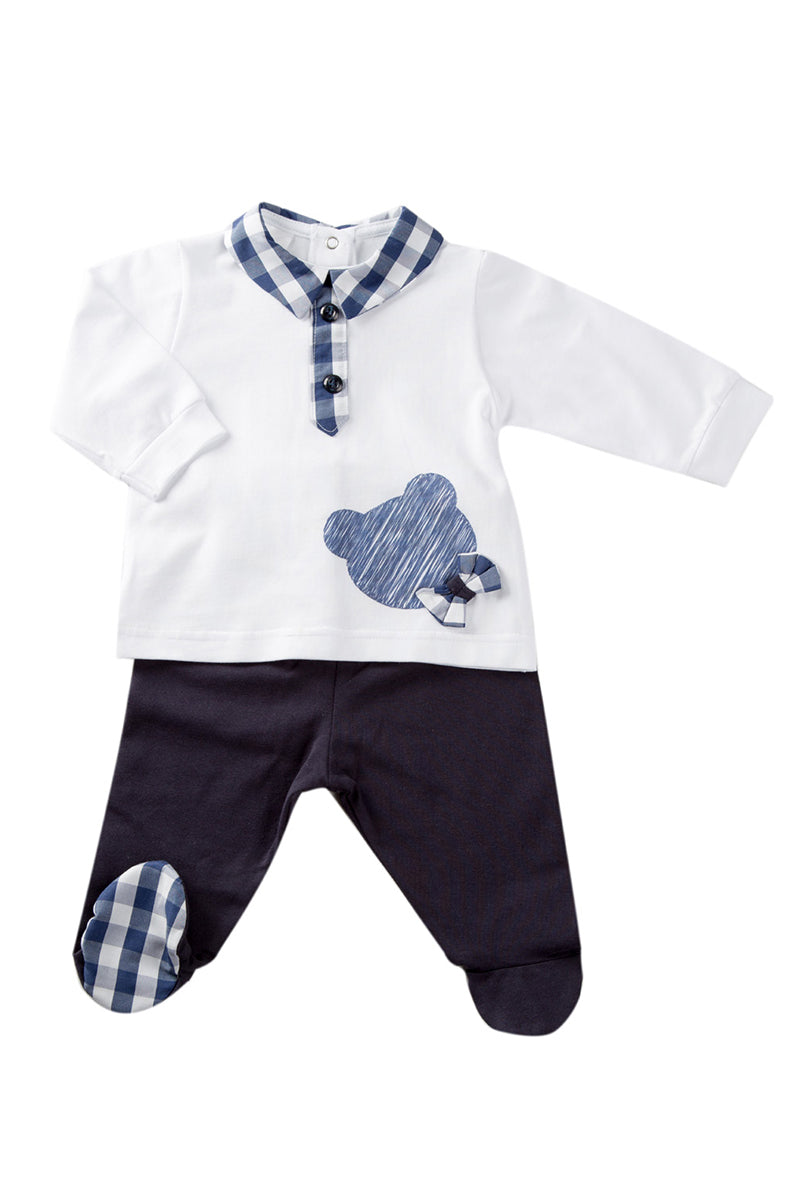 Completo 2 pezzi con inserti in tela fantasia vichy, stampa e applicazione