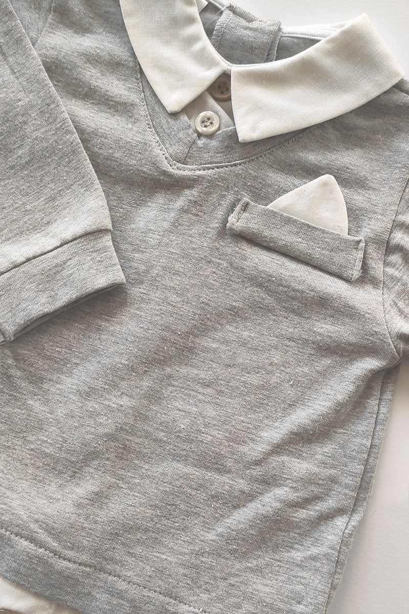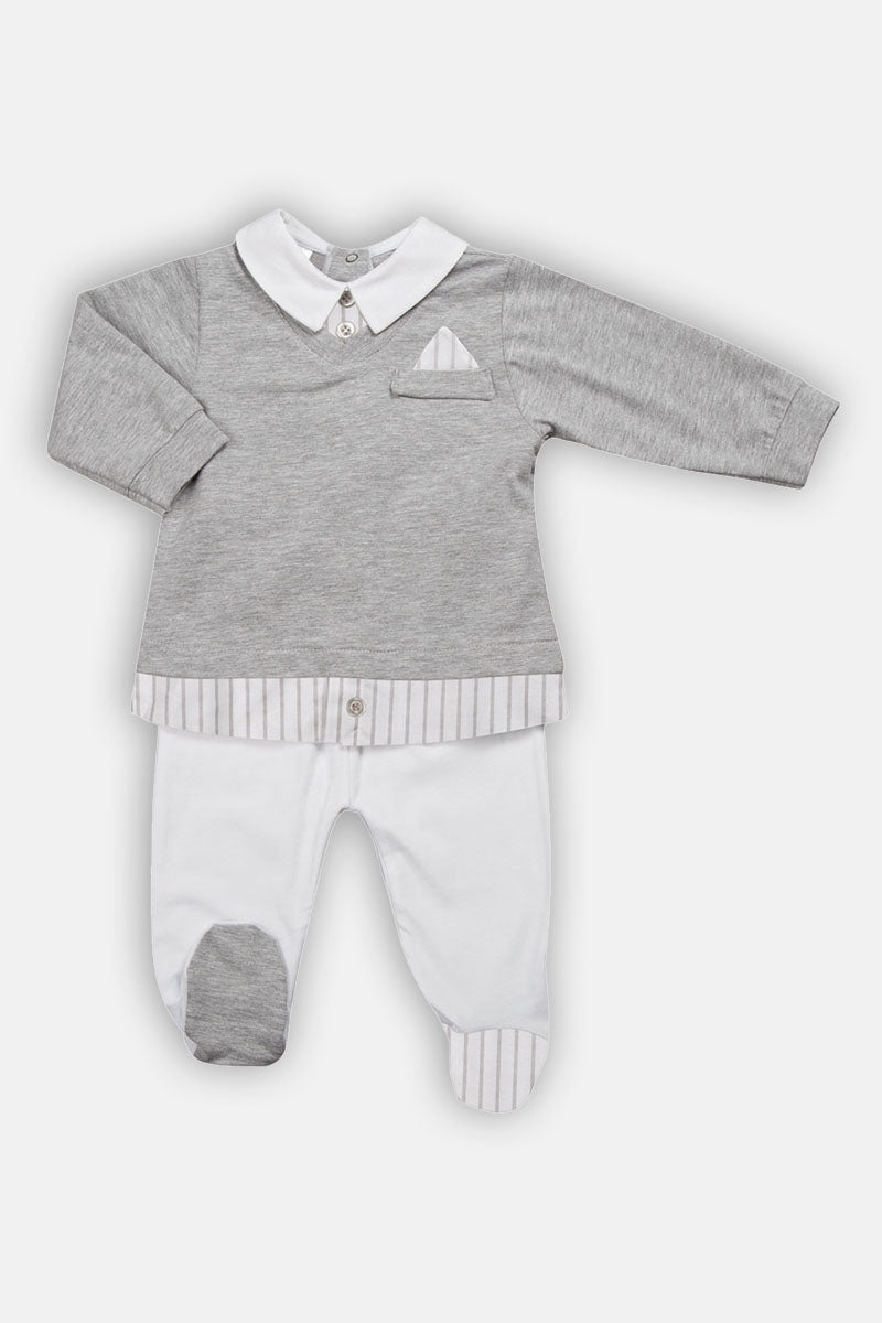 Completo 2 pezzi in cotone elasticizzato con inserti in tela di cotone rigati