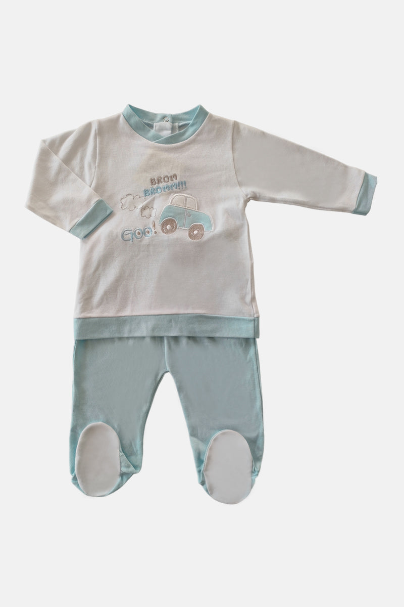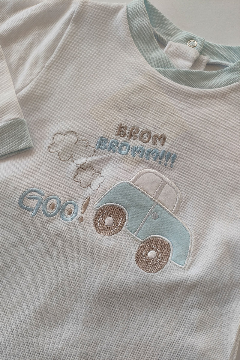 Completo 2 pezzi in piquet con ricamo macchinina
