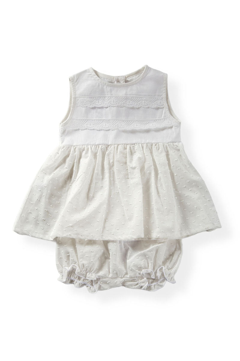 Completo 2 pezzi in tela di cotone con pizzo applicato, inserto in tela di cotone plumetis