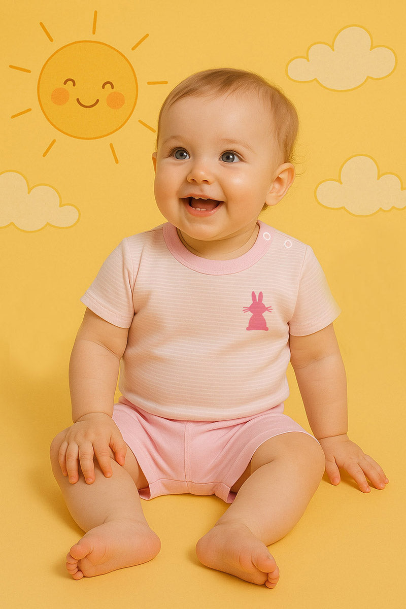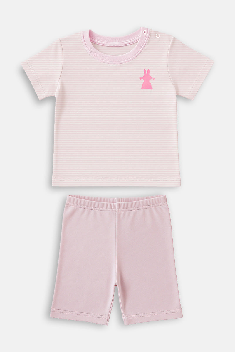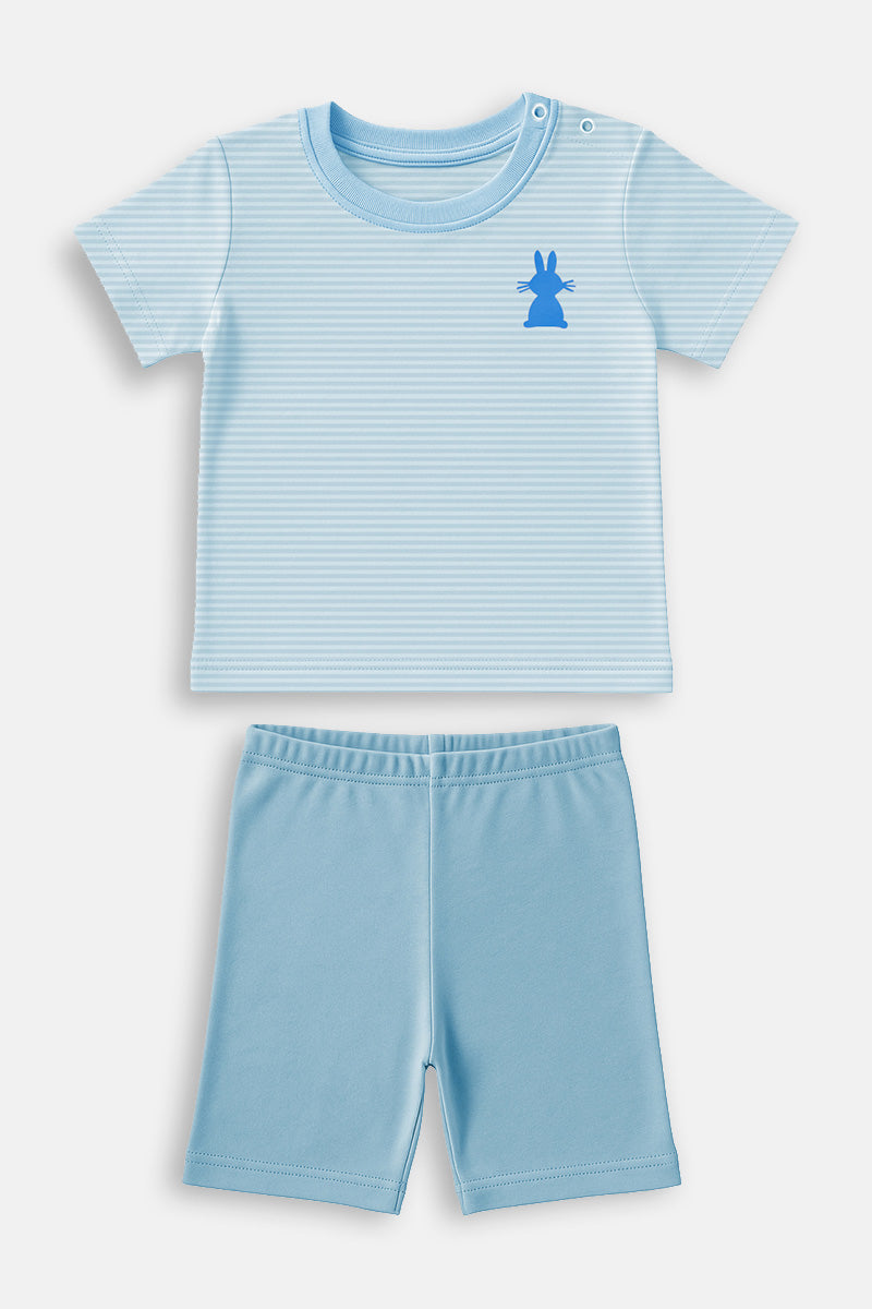 Completo corto in cotone rigato con stampa coniglietto e pantaloncino