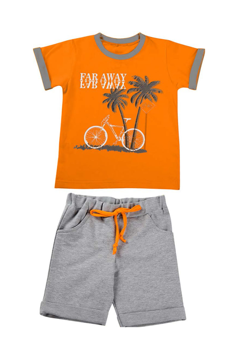 Completo mezza manica in cotone elasticizzato con stampa e pantaloncino in contrasto