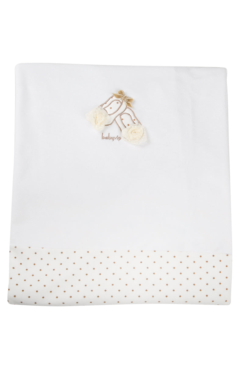 Copertina in ciniglia a pois con ricamo e applicazioni