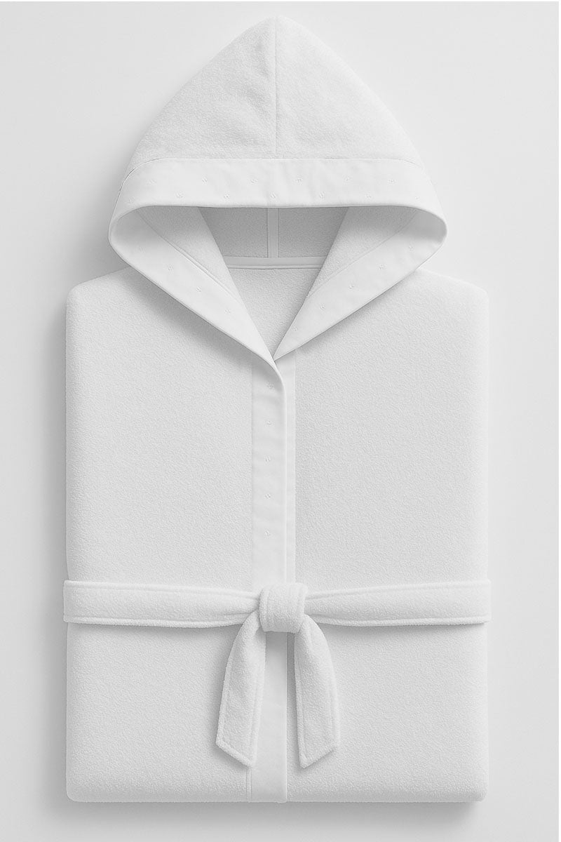 • Accappatoio con cappuccio in spugna di puro cotone morbido ed assorbente
