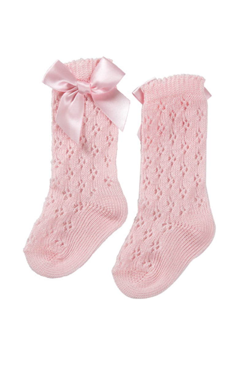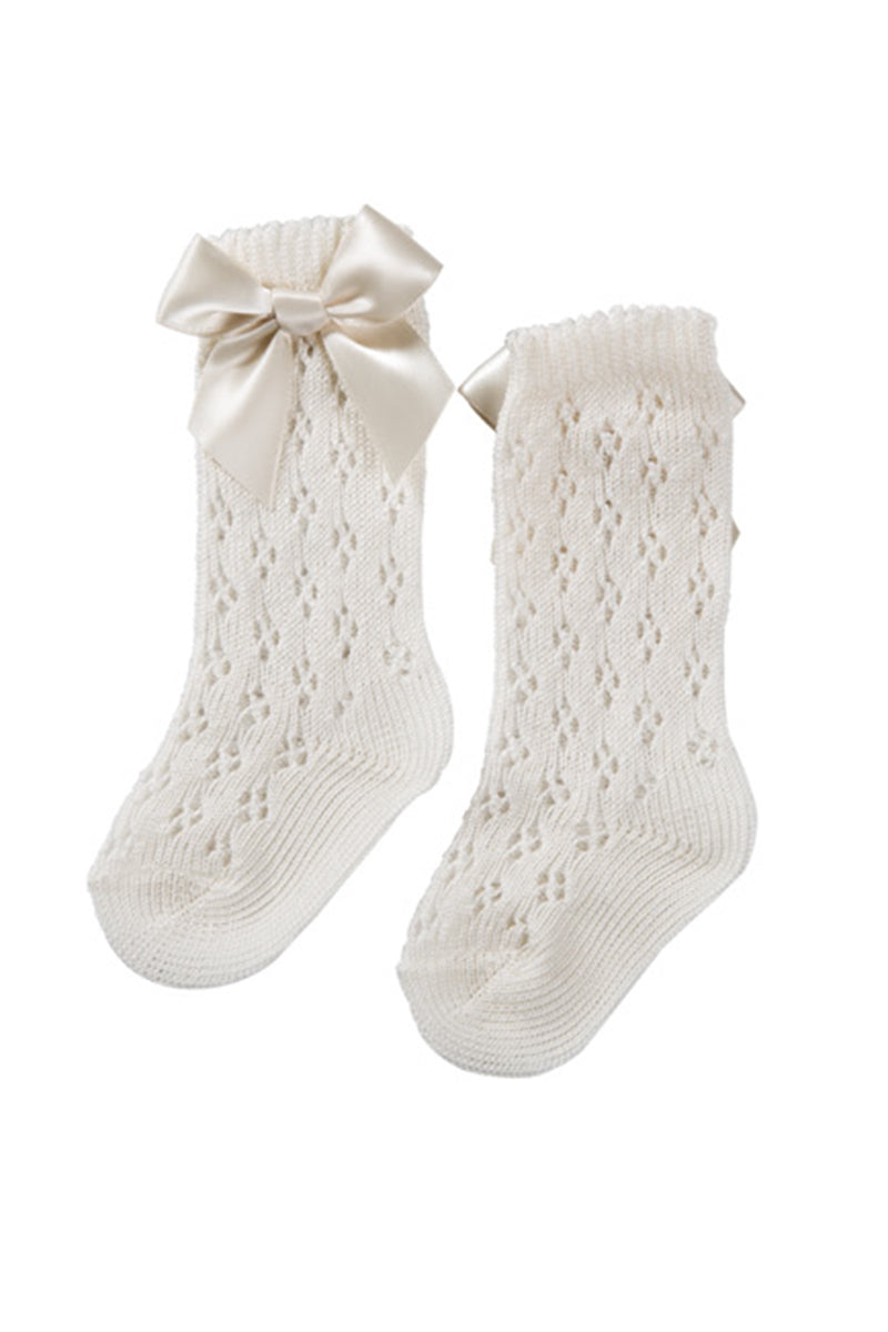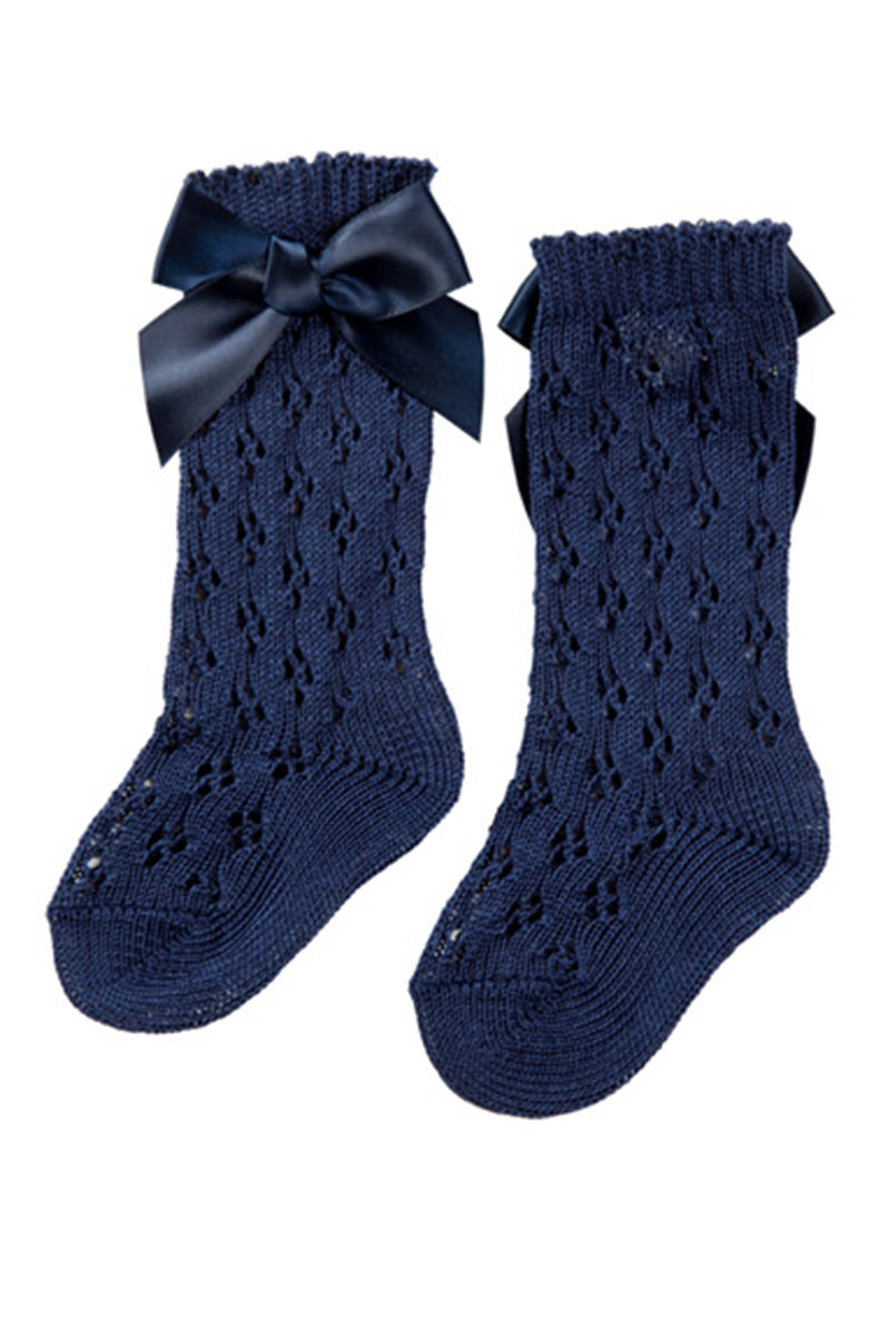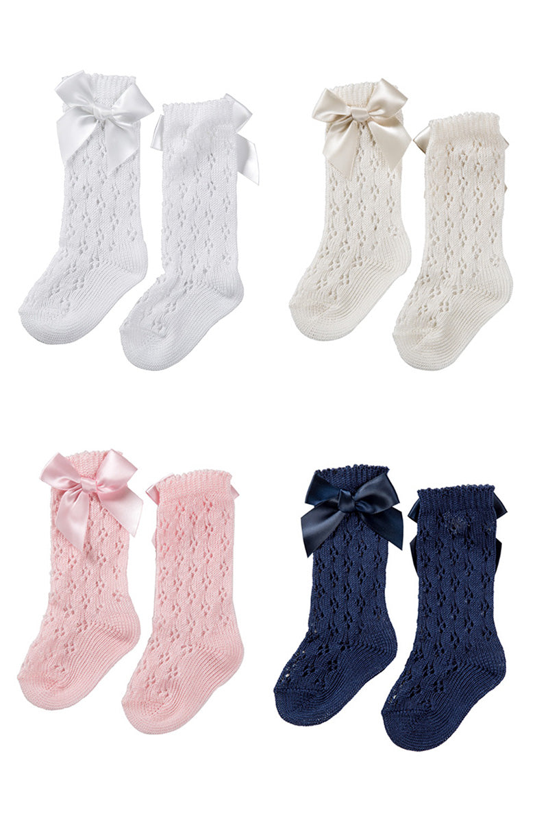 Calzino gambaletto traforato con applicazione e fiocco in cotone mercerizzato