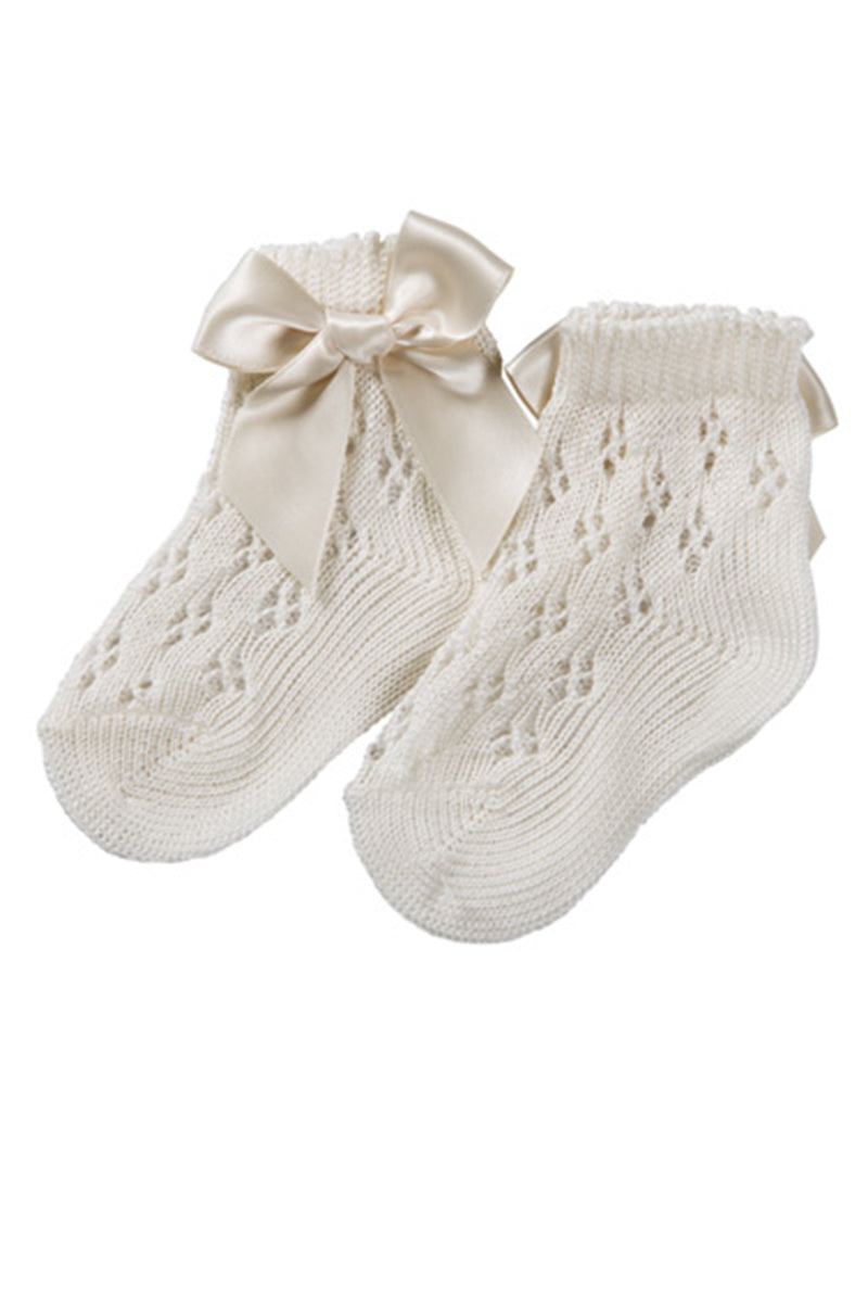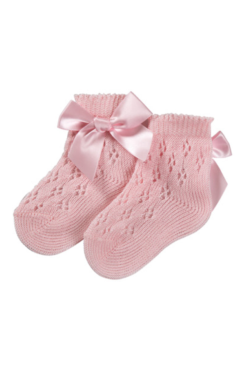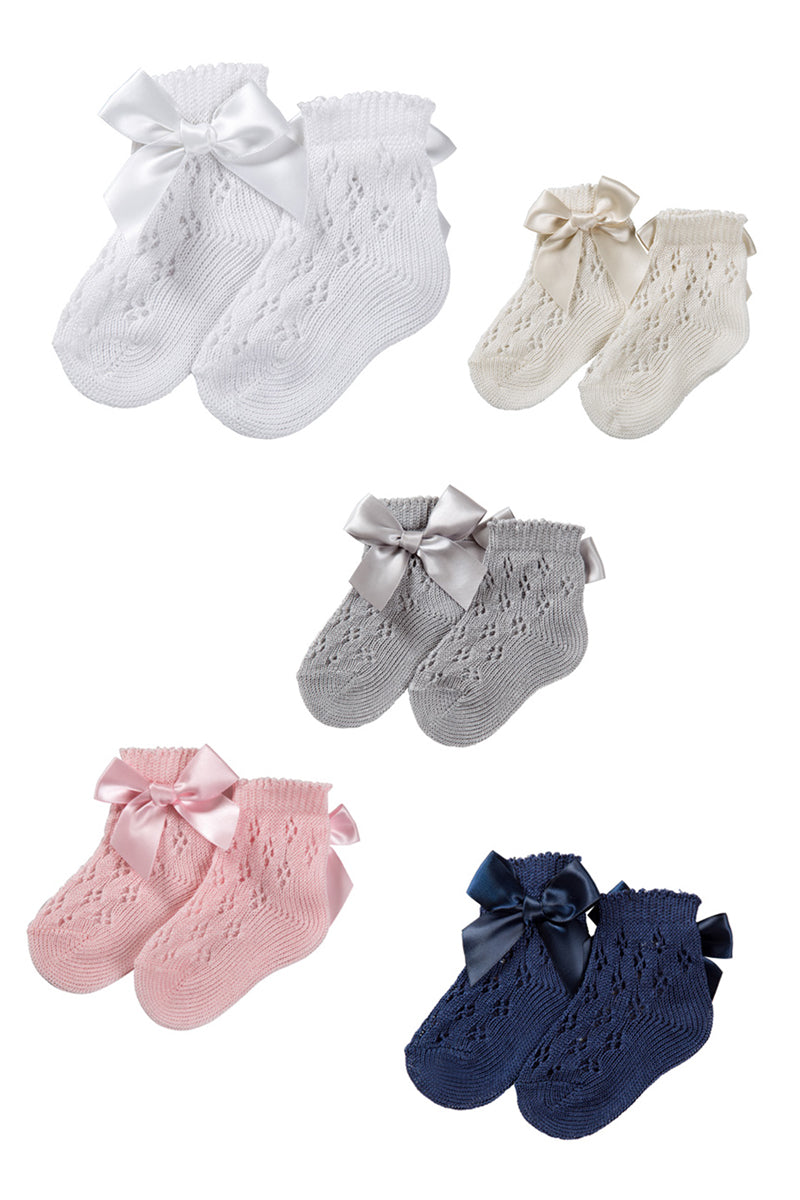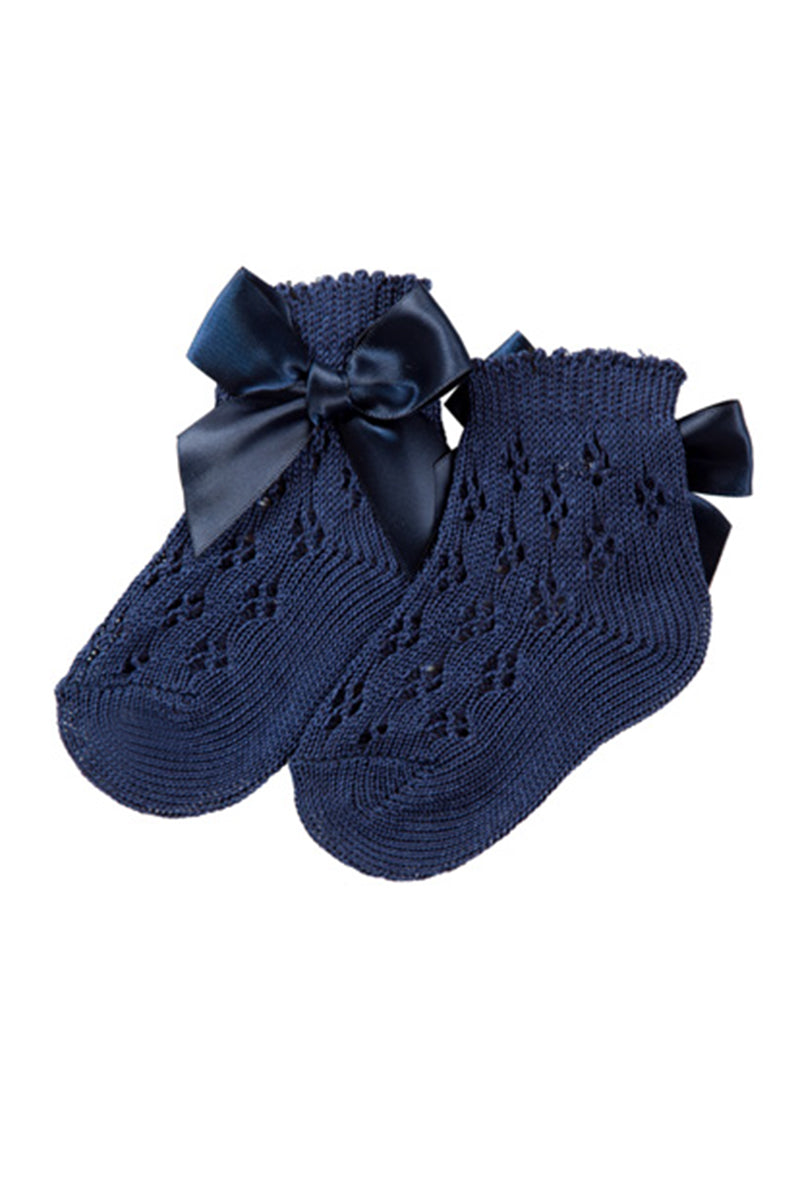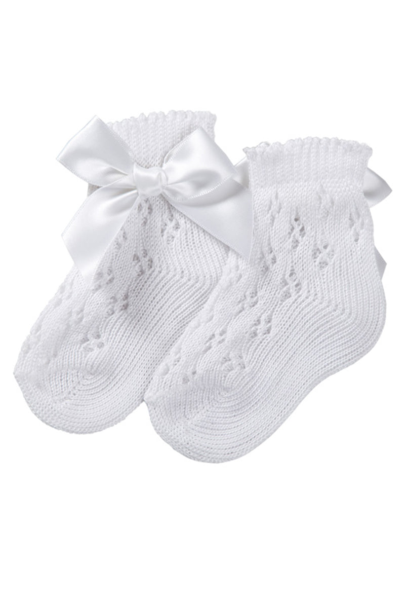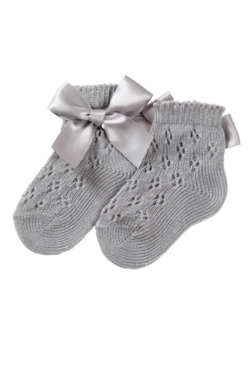 Calzino corto traforato con applicazione e fiocco in cotone mercerizzato