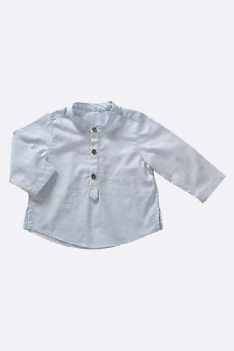 Camicia in tela di cotone con collo coreano, fenda e bottoncini in contrasto