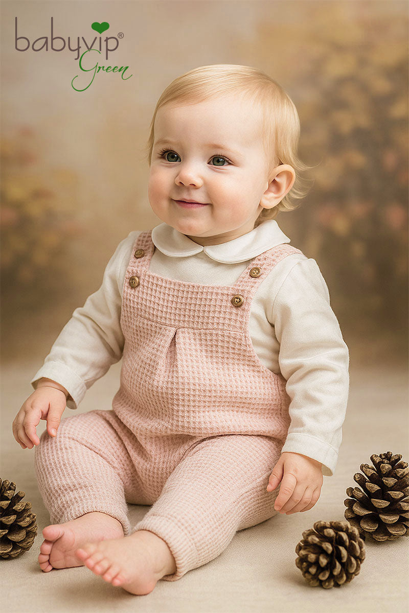 Completo 2 pezzi neonata: Salopette in cotone organico a nido d’ape + Body in caldo cotone organico