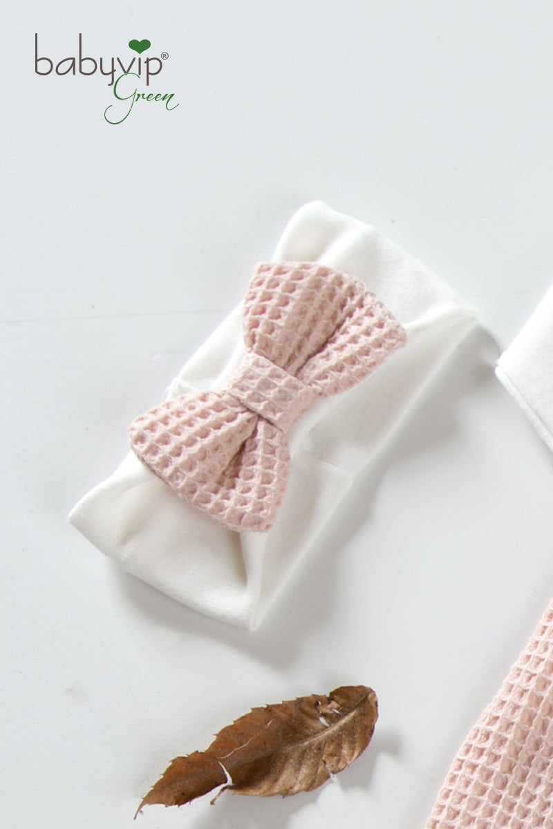 Fascia per capelli in cotone organico con fiocco a nido d’ape