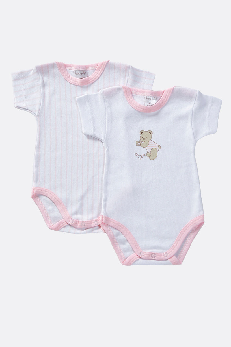 Body mezza manica in cotone con stampa orsetto e fantasia a righe - Lotto 2 pezzi