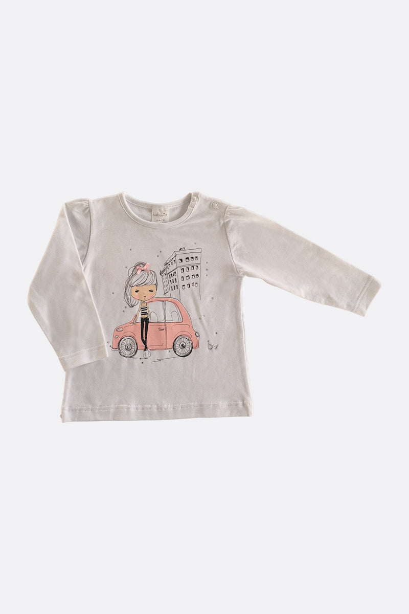 Maglia in cotone elasticizzato garzato con stampa nodino e strass