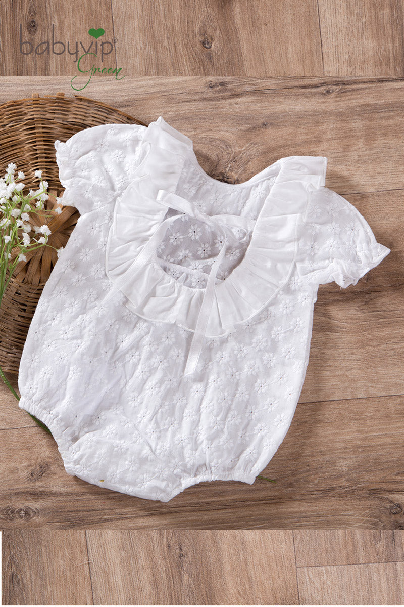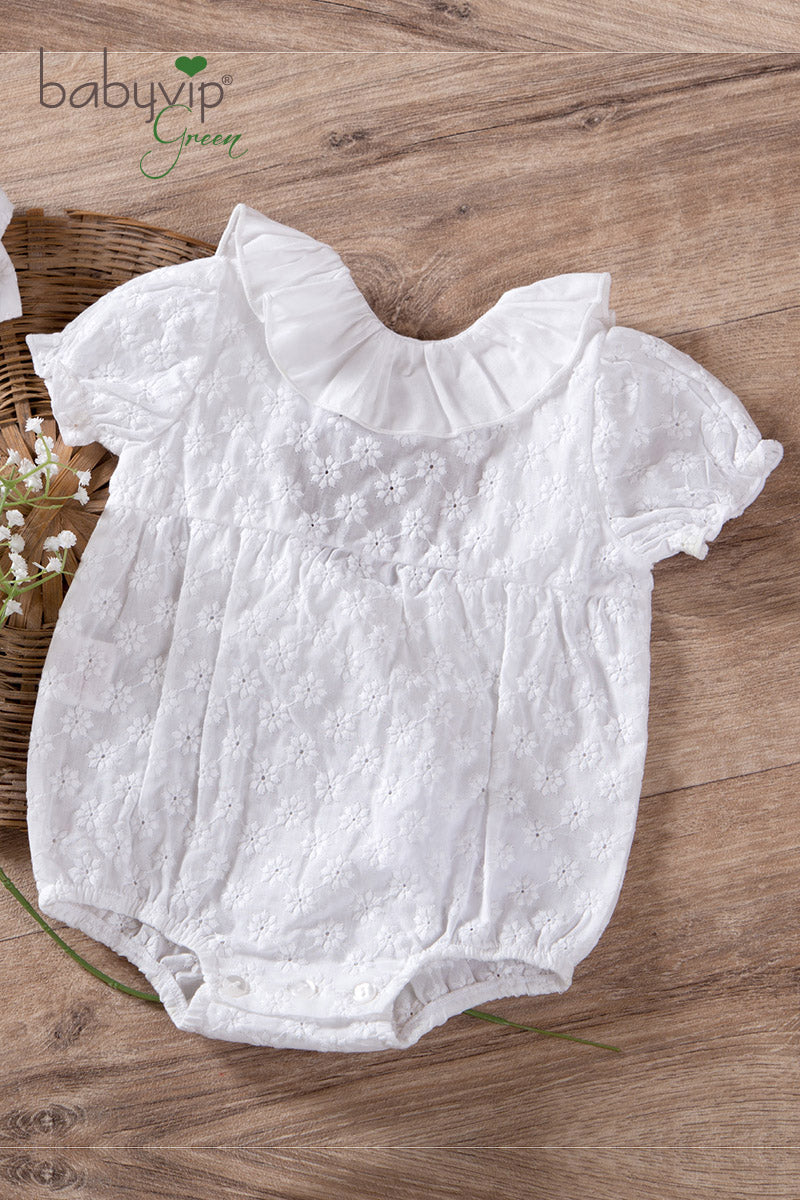 Pagliaccetto in pizzo sangallo di cotone con balza sullo scollo e maniche a palloncino