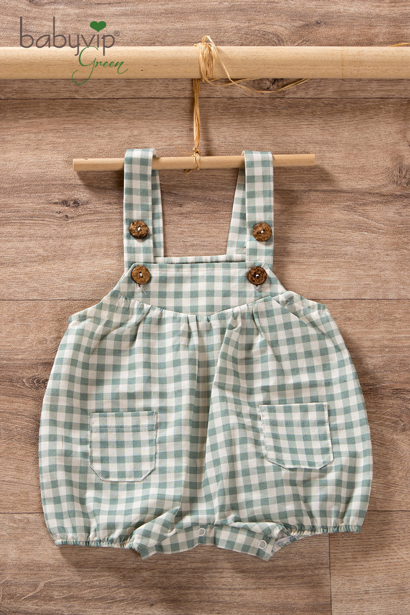 Pagliaccetto modello salopette in cotone organico fantasia vichy
