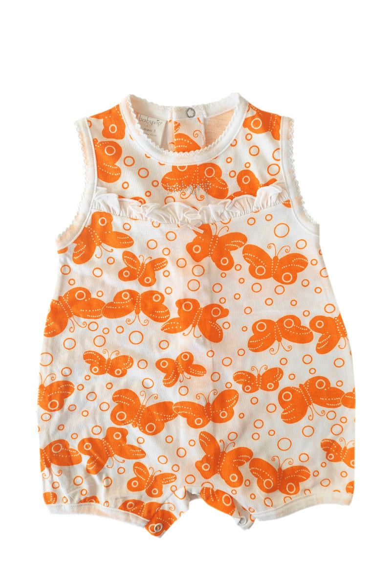 Pagliaccetto spalla larga in cotone con fantasia farfalle e strass
