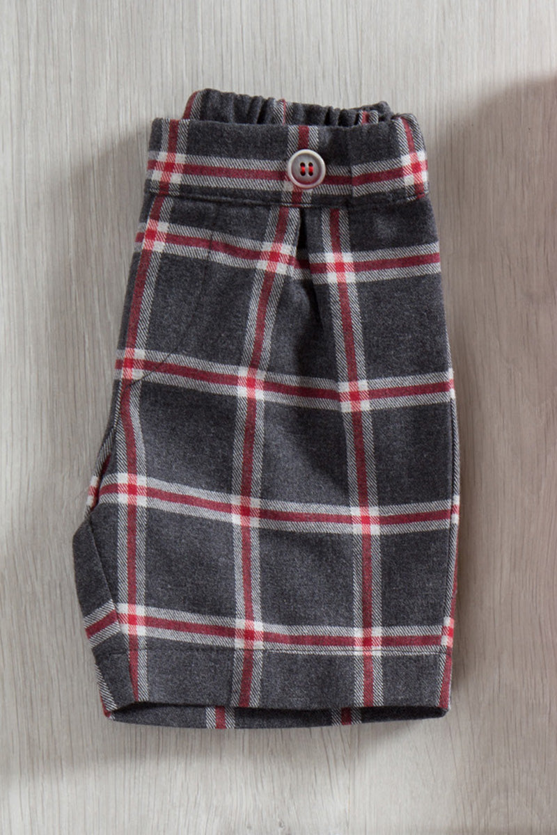 Bermuda in flanella a quadri con pencee bottoni applicati