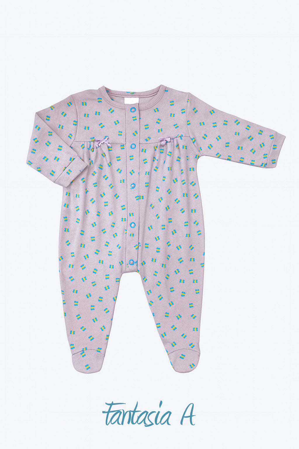 Tutina in cotone a fantasia con fiocchettini