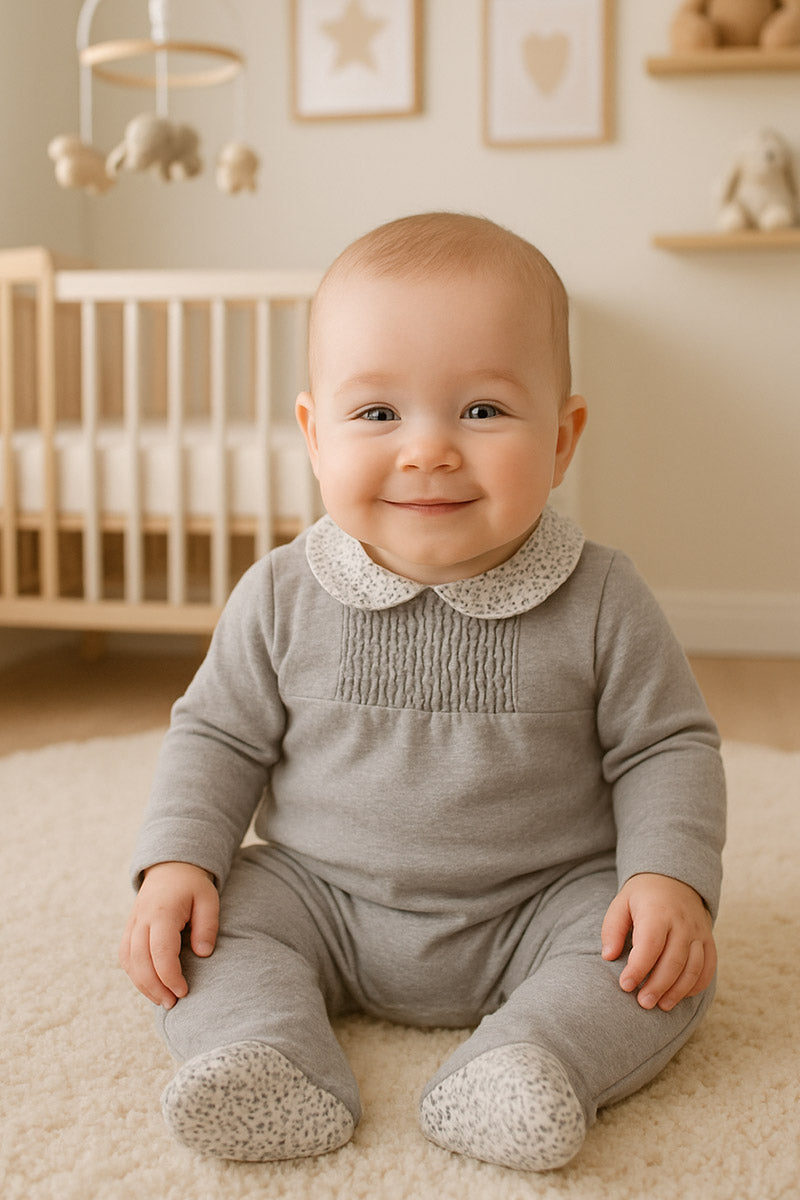 Tutina in caldo cotone organico con colletto fantasia floreale e taglio con punto smock