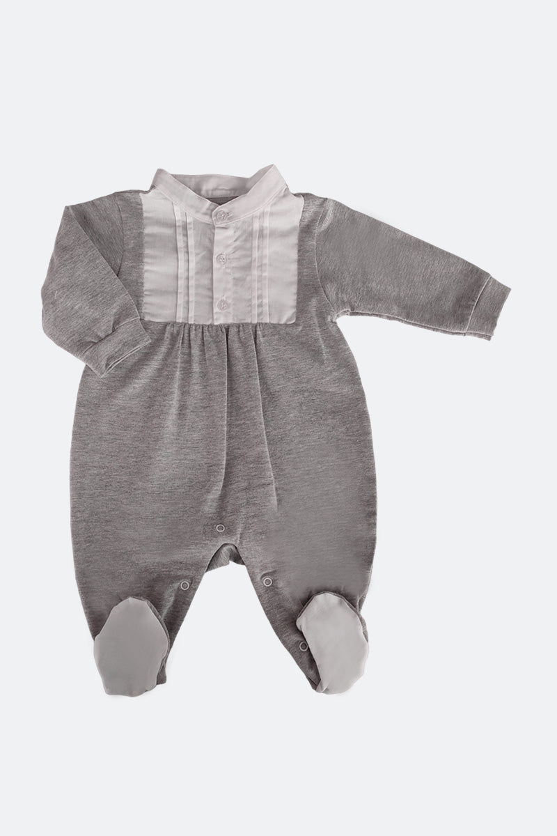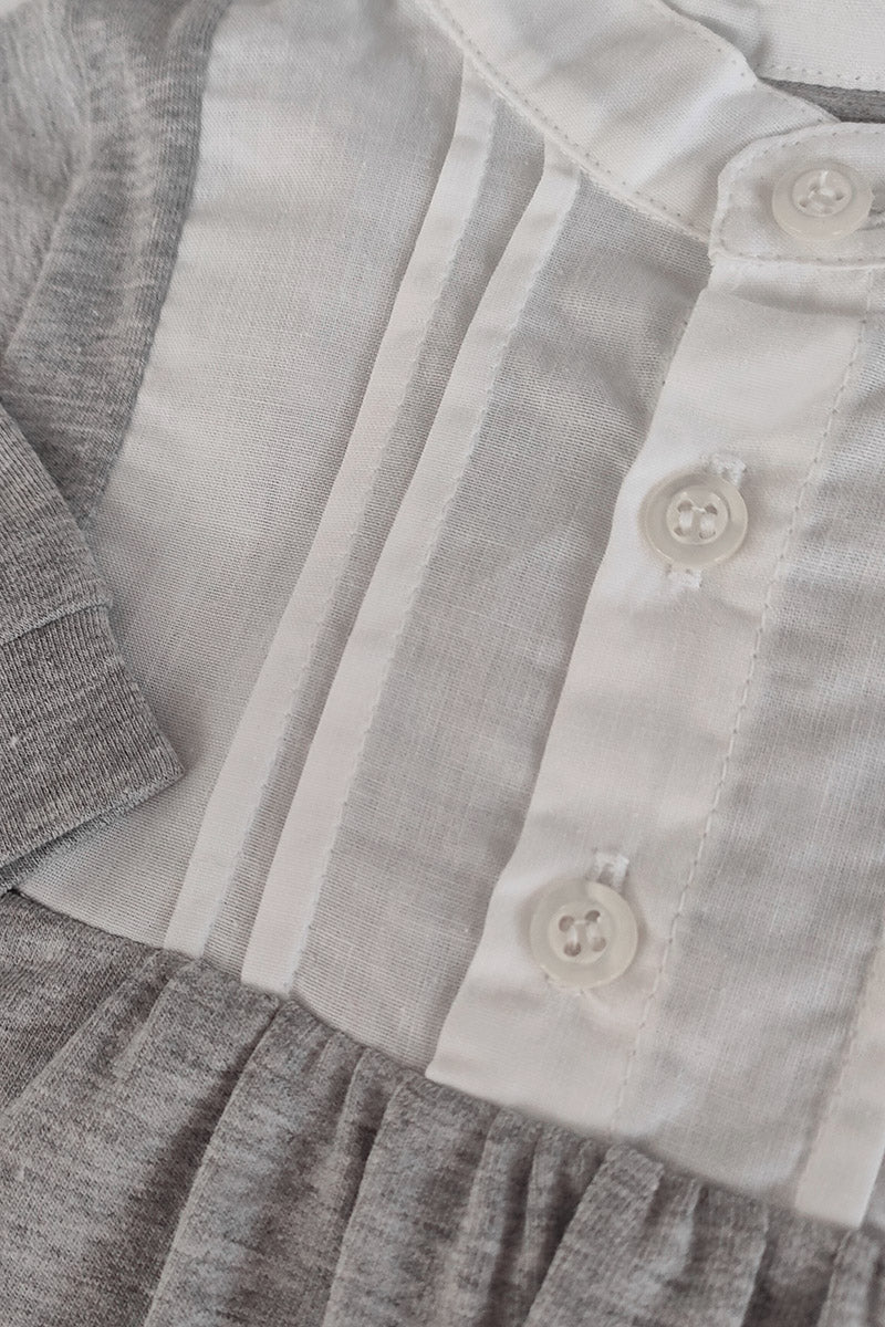 Tutina collo coreano con inserti in tela di cotone con pieghette e bottoncini