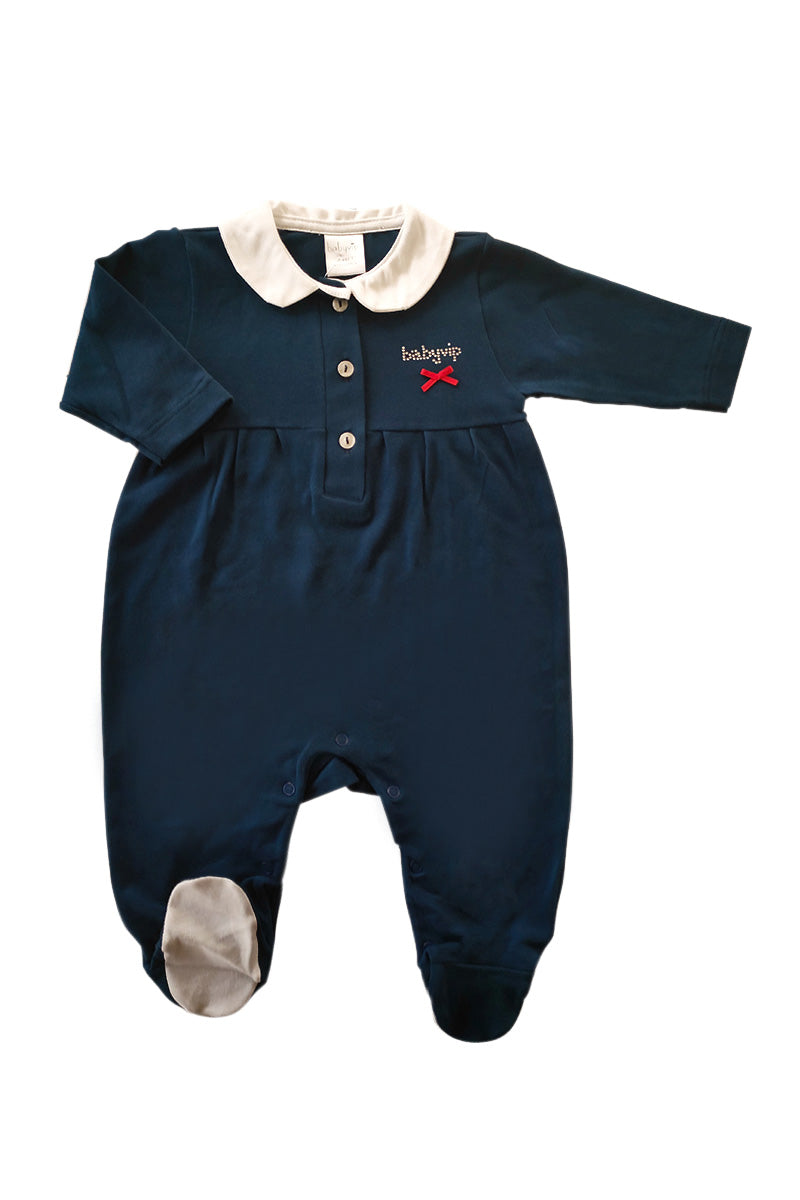 Tutina in piquet con fiocchettino e strass