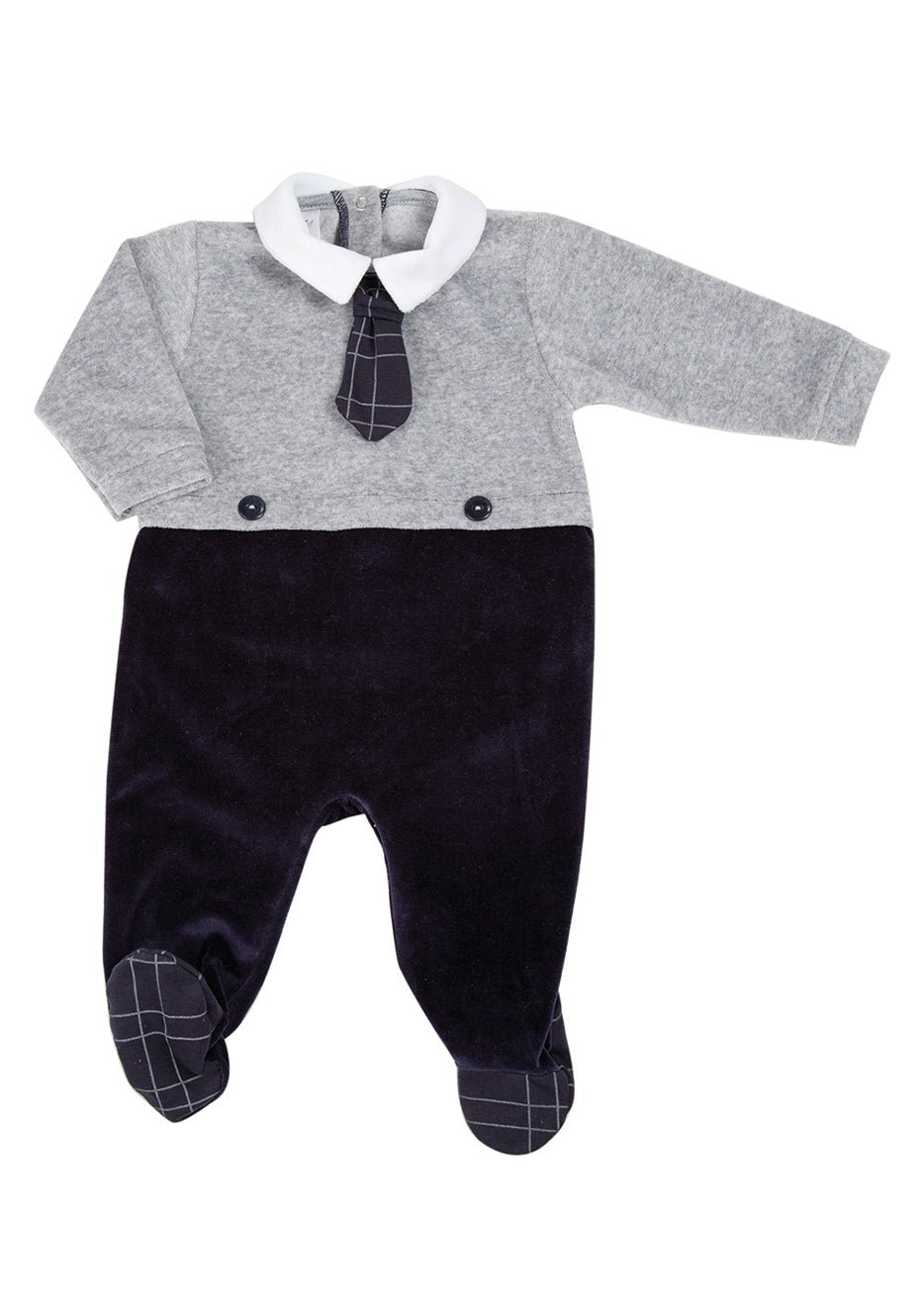 Tutina in ciniglia con cravattino e inserti scozzesi