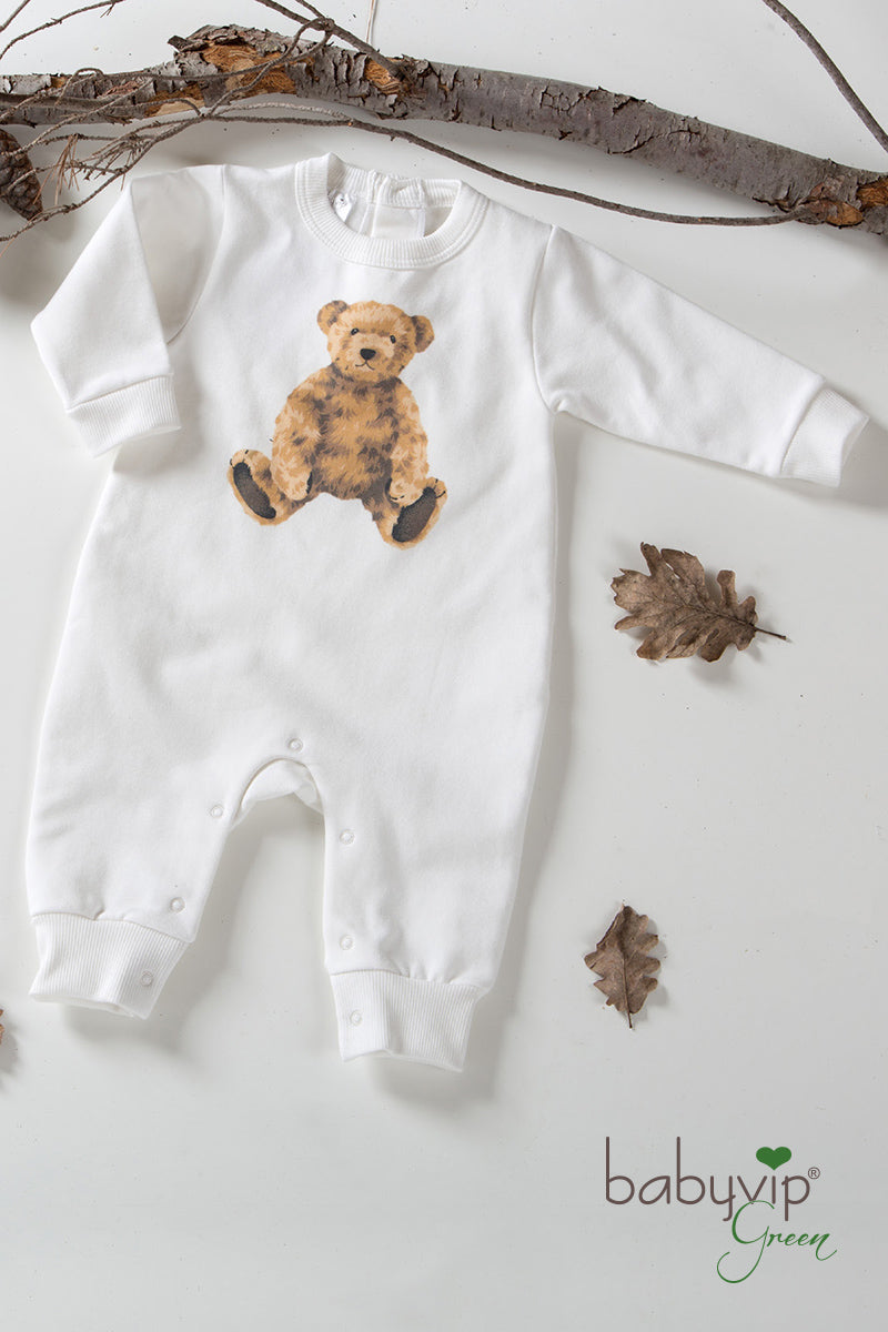 Tutone neonato in felpa organica garzata con stampa orsetto