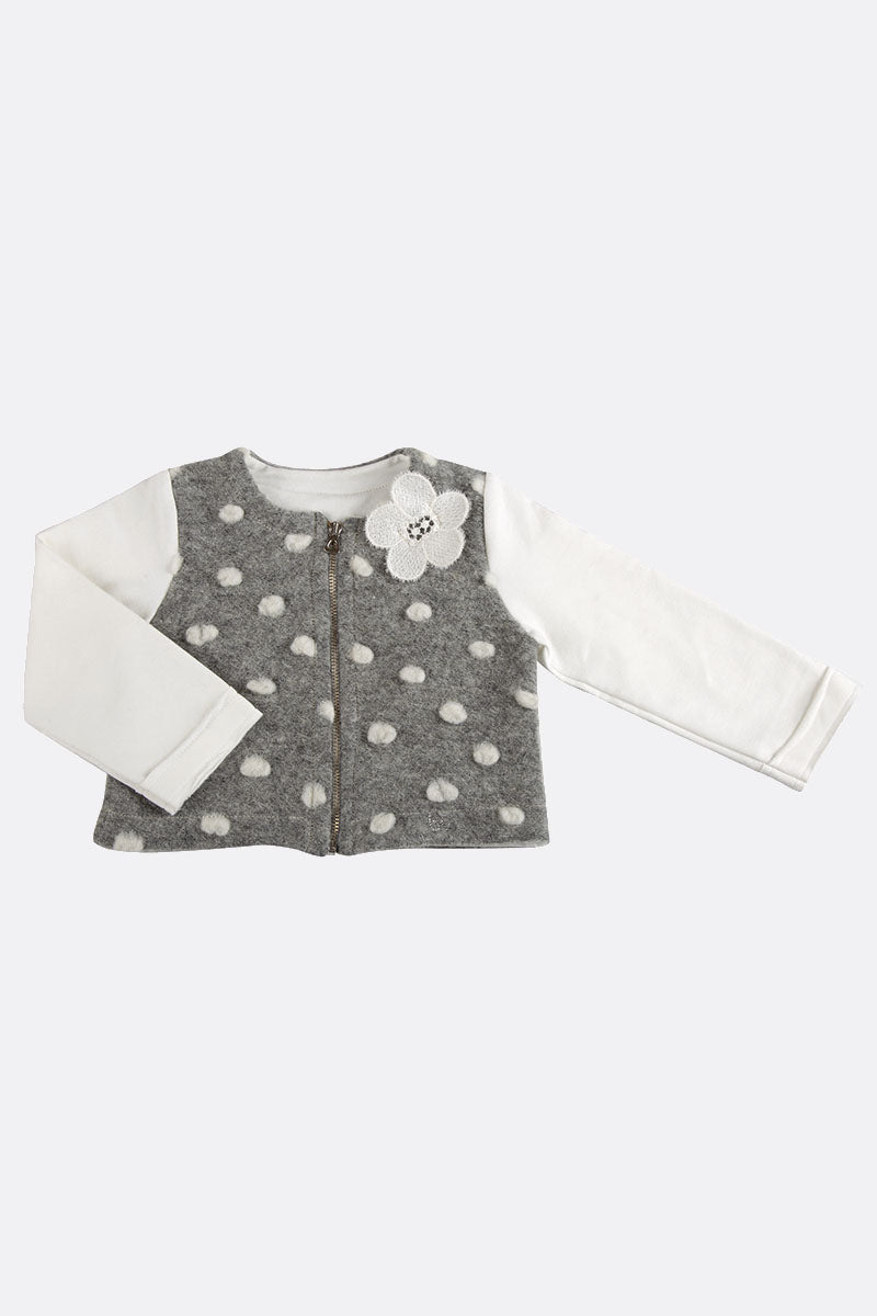 Giacchino in lana e felpa garzata con applicazione fiore e chiusura zip