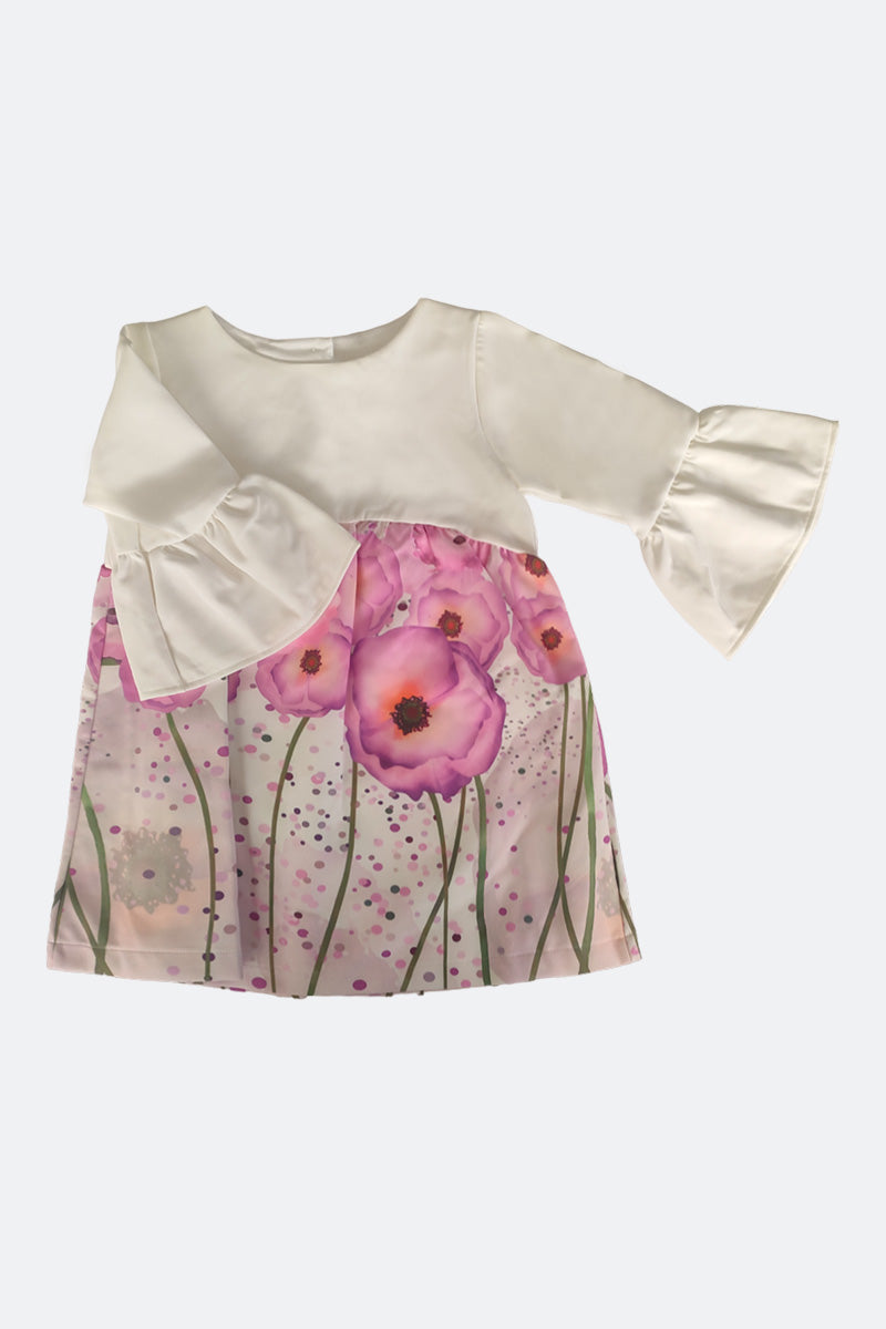 Vestitino bimba con maniche 3/4 a sbuffo e stampa floreale