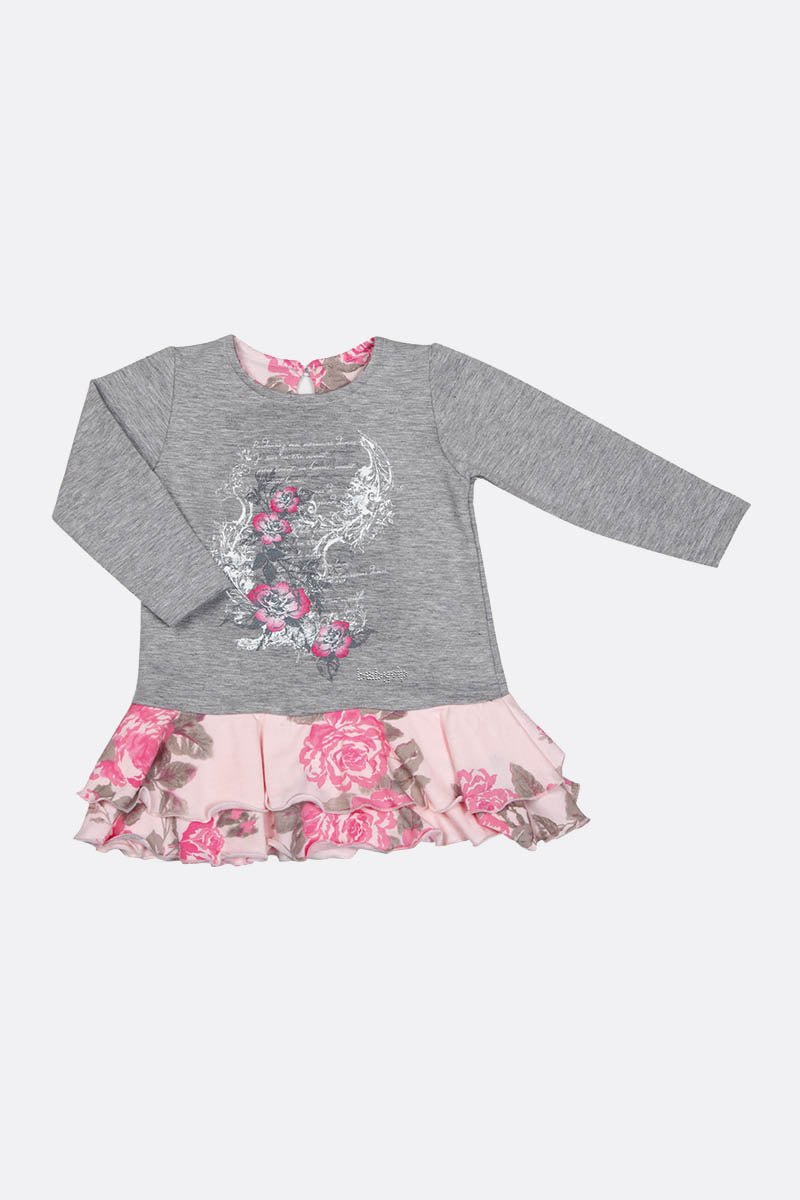 Vestitino in felpa garzata con stampa strass e rouches fiorate