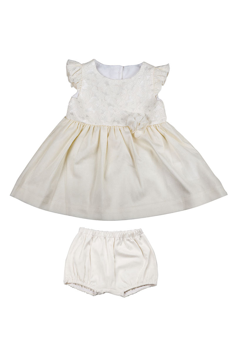 Vestitino in tela di cotone con inserti in tessuto operato e fiocco + mutandina