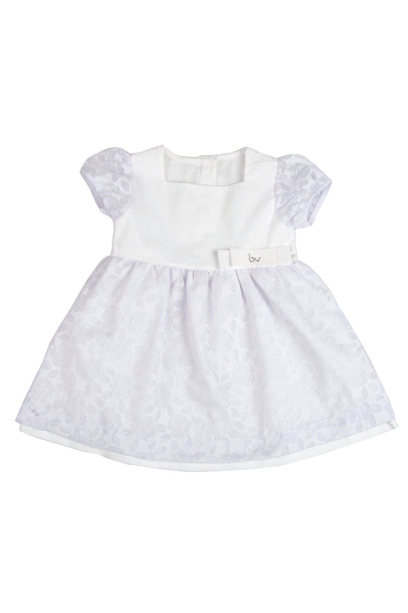 Vestitino in tela di cotone con inserto in tessuto devorè nastro in gros grain e strass