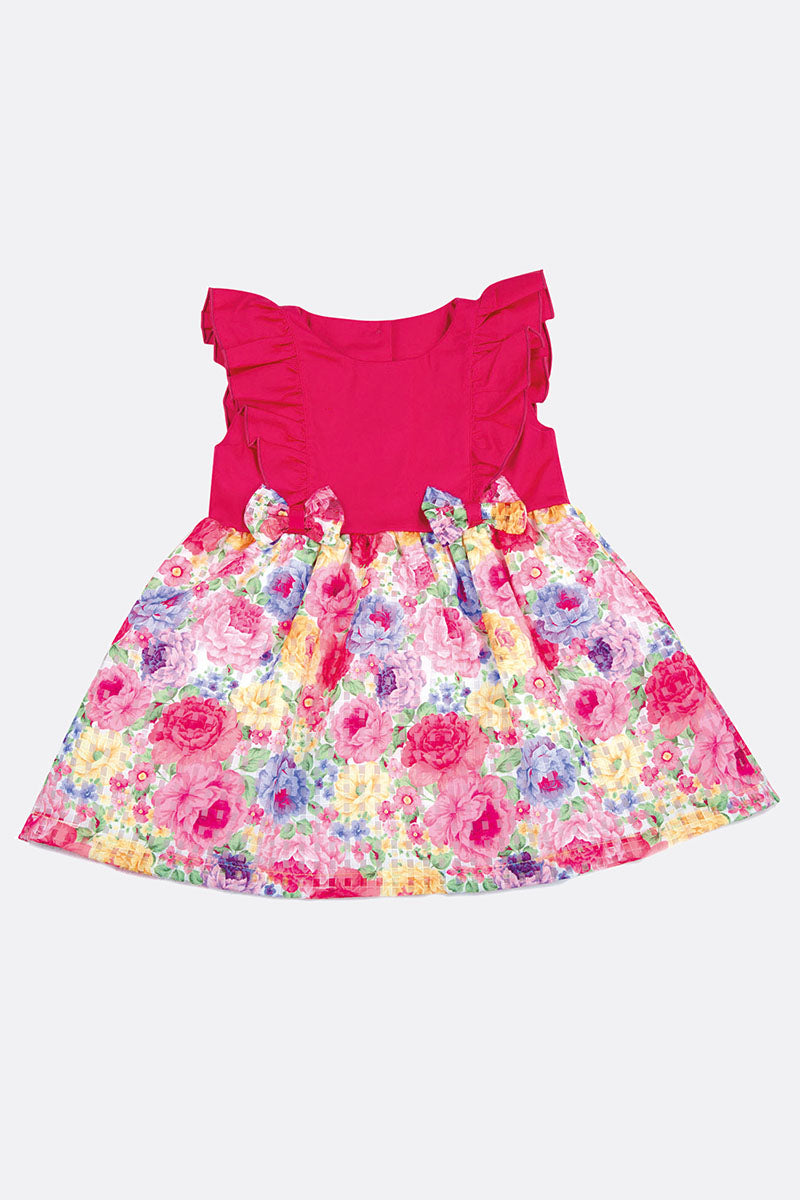 Vestitino in tela elasticizzata con balze e inserti in organza fantasia floreale
