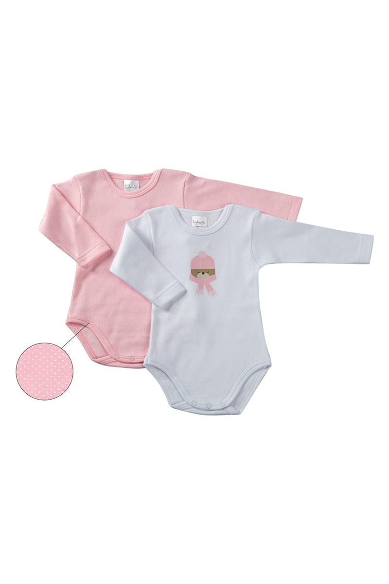 Lotto 2 pezzi body manica lunga con stampa e fantasia micropois in cotone caldo