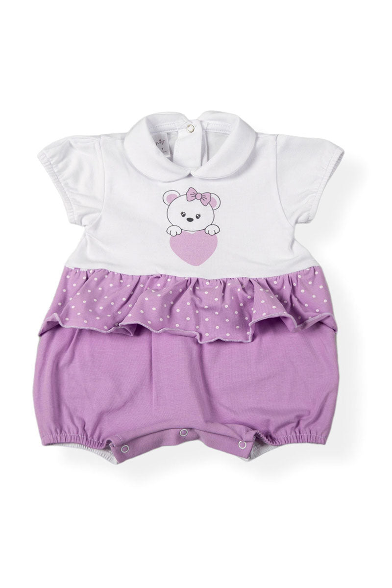 Pagliaccetto in tela di cotone organico fantasia floreale con scollo quadro alette e taglio con arricciatura