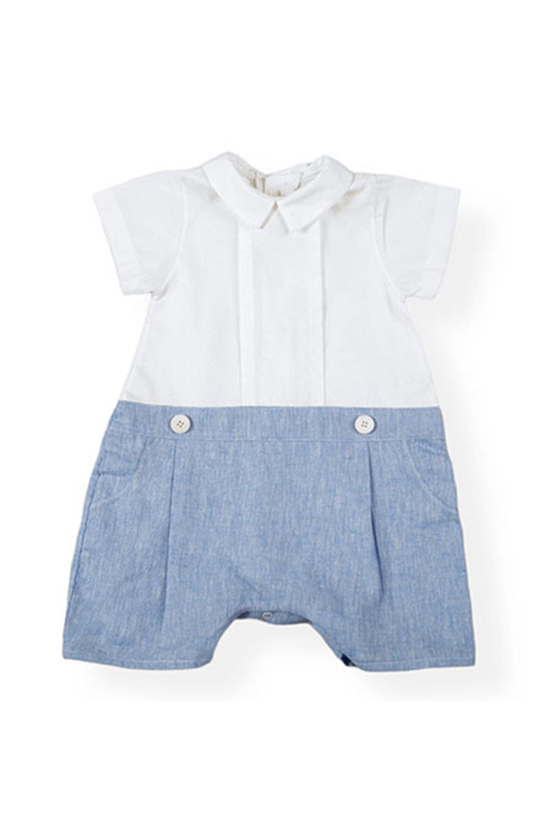 Pagliaccetto in tela di cotone con pieghette, inserto in tessuto effetto lino, pence e bottoni