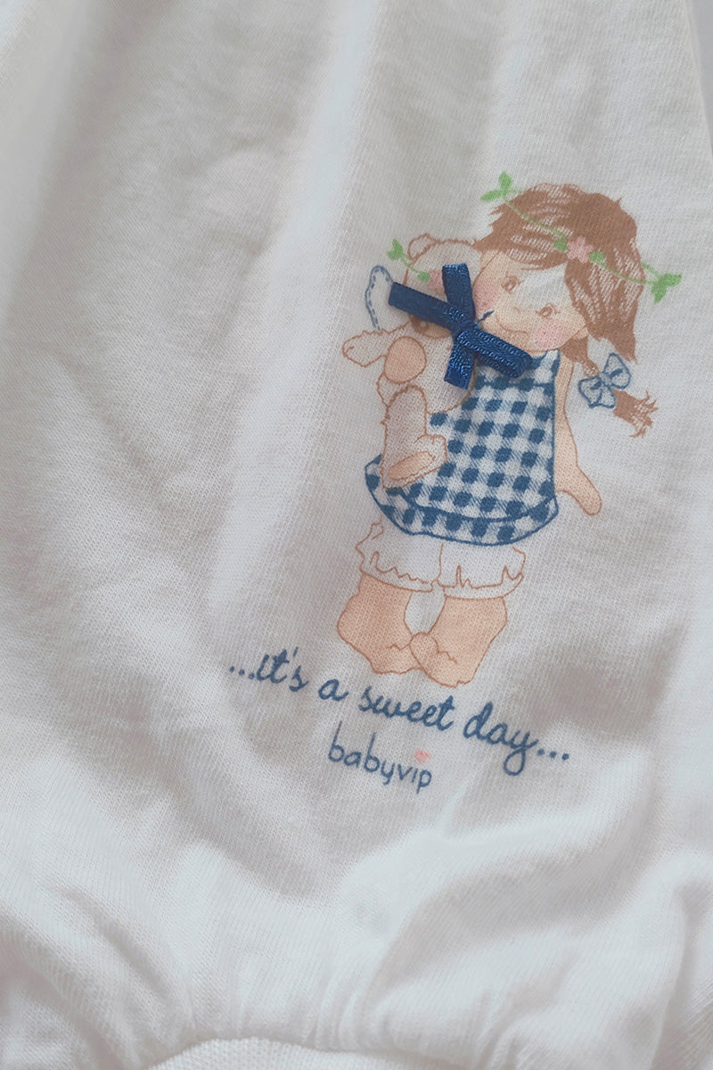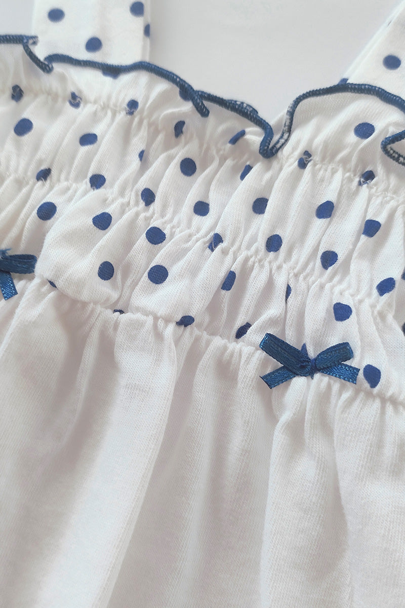Pagliaccetto spalla larga in cotone con stampa - fiocchettini e pois