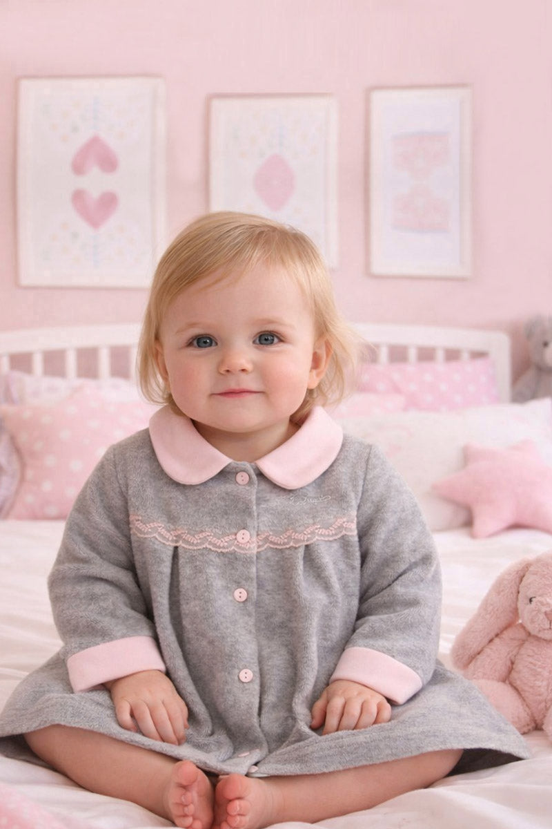 Vestaglia bimba in pile con strass e nastrino in contrasto coordinato