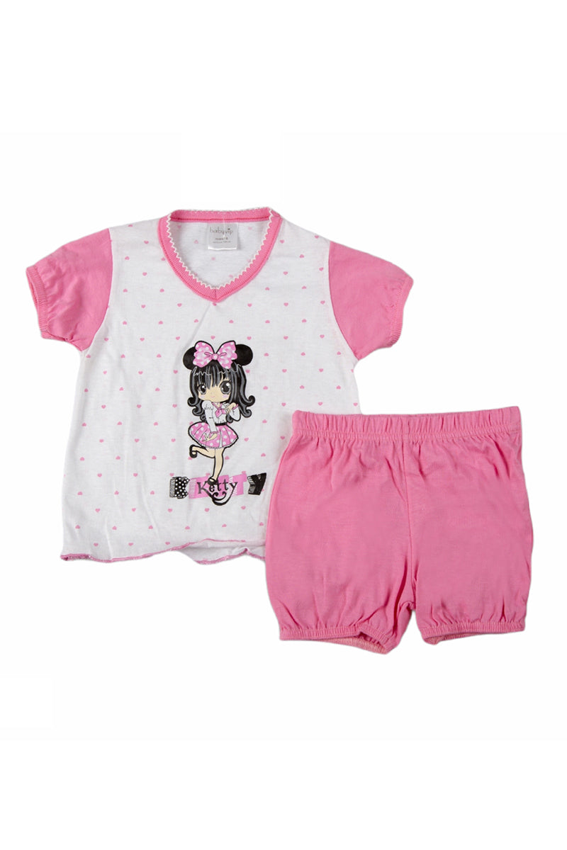 Pigiama corto neonata/bimba mezza manica in cotone con stampa
